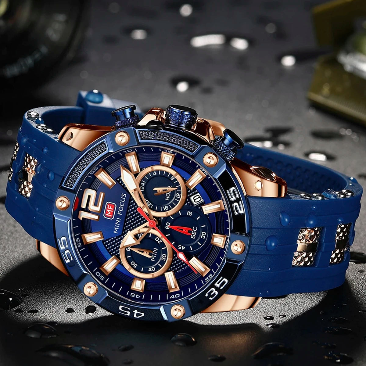 Reloj Minifocus azul MIN-2 de moda con correa de silicona, 100% original de fábrica, garantía 1 año, el acompañante perfecto para el hombre actual.