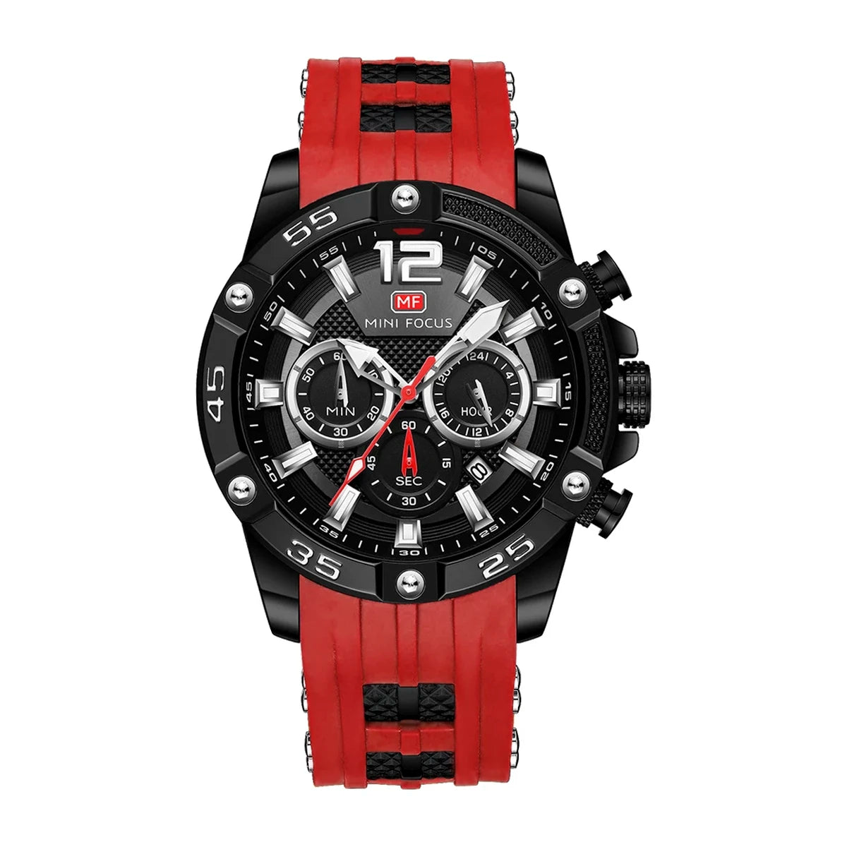 Reloj Minifocus sport rojo MIN-4 de moda con correa de silicona, 100% original de fábrica, garantía 1 año, el acompañante perfecto para el hombre actual.