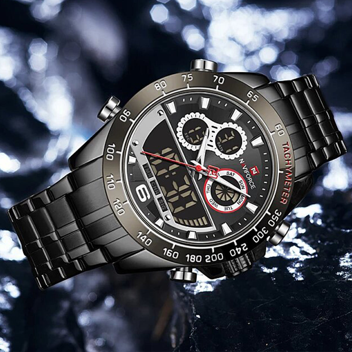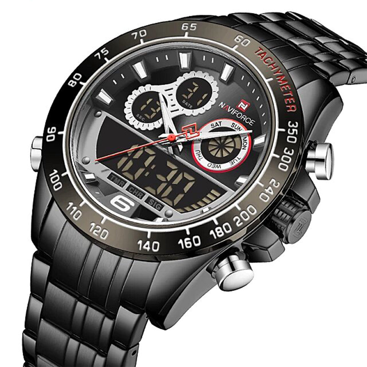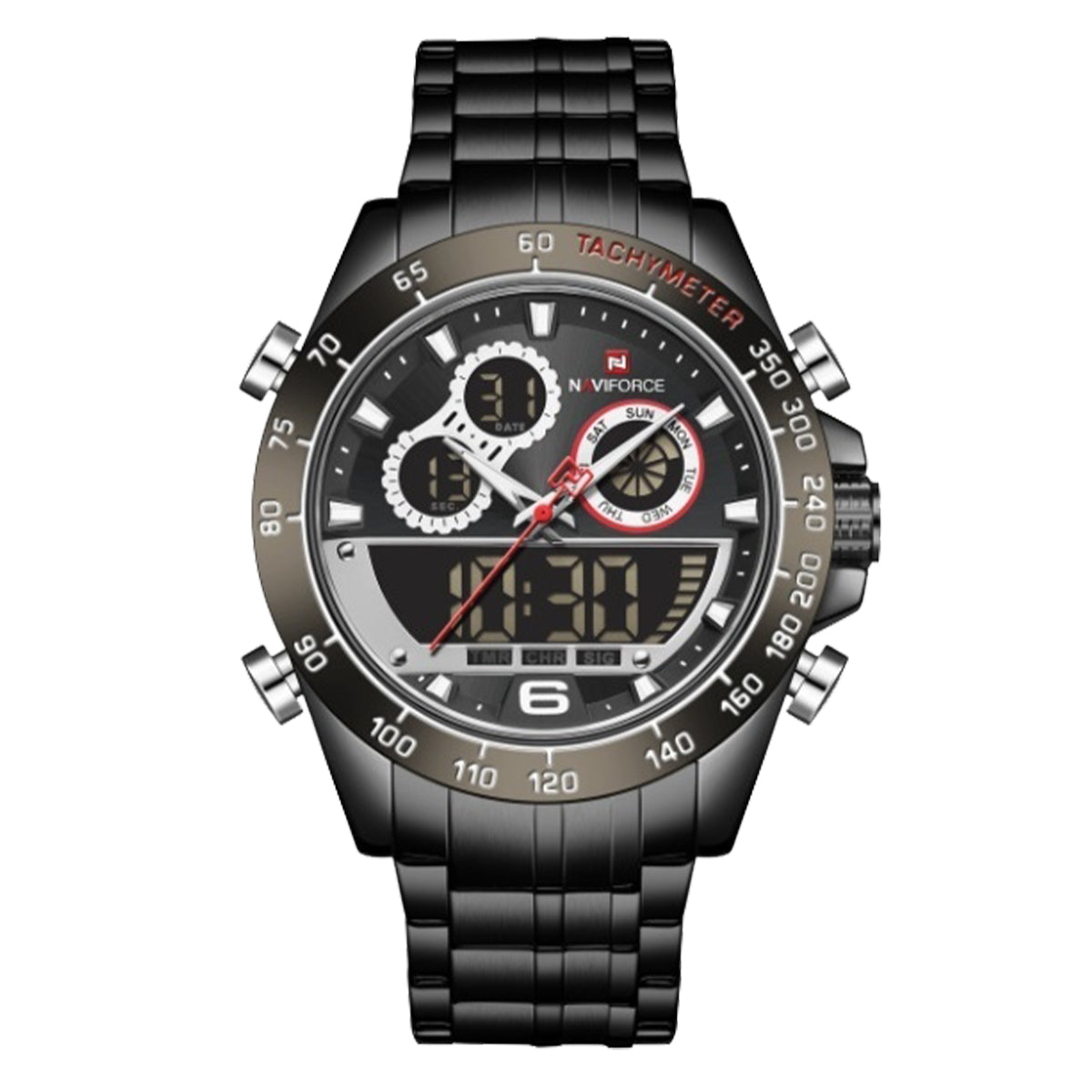 Reloj Naviforce Negro NAV-54 de moda con correa de acero inoxidable, 100% original de fábrica, garantía 1 año, el acompañante perfecto para el hombre actual.