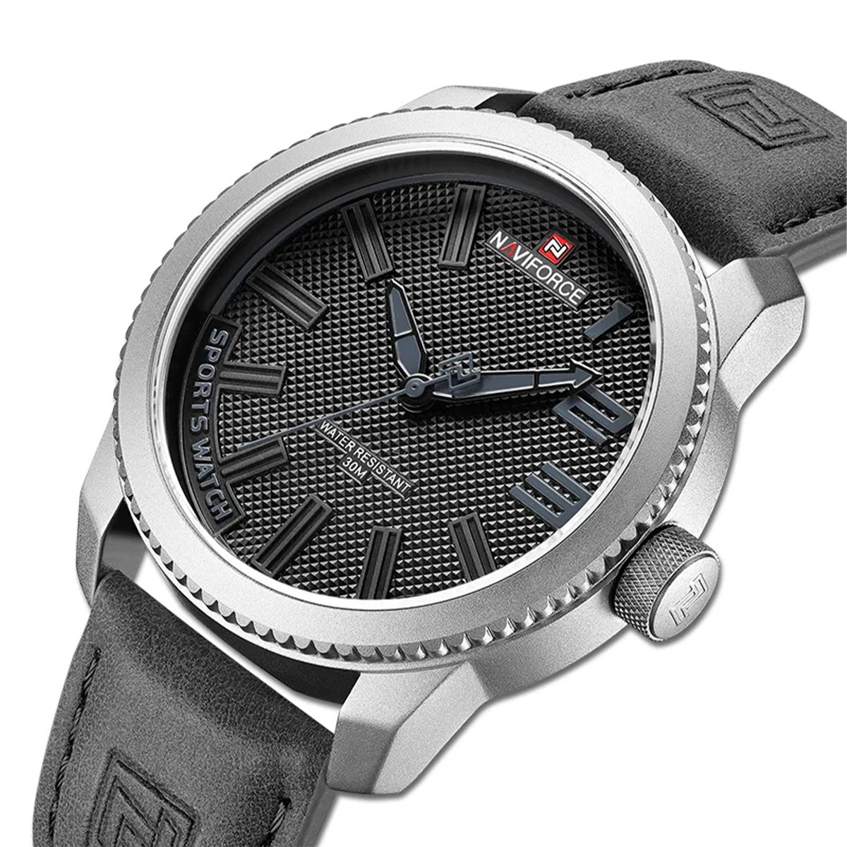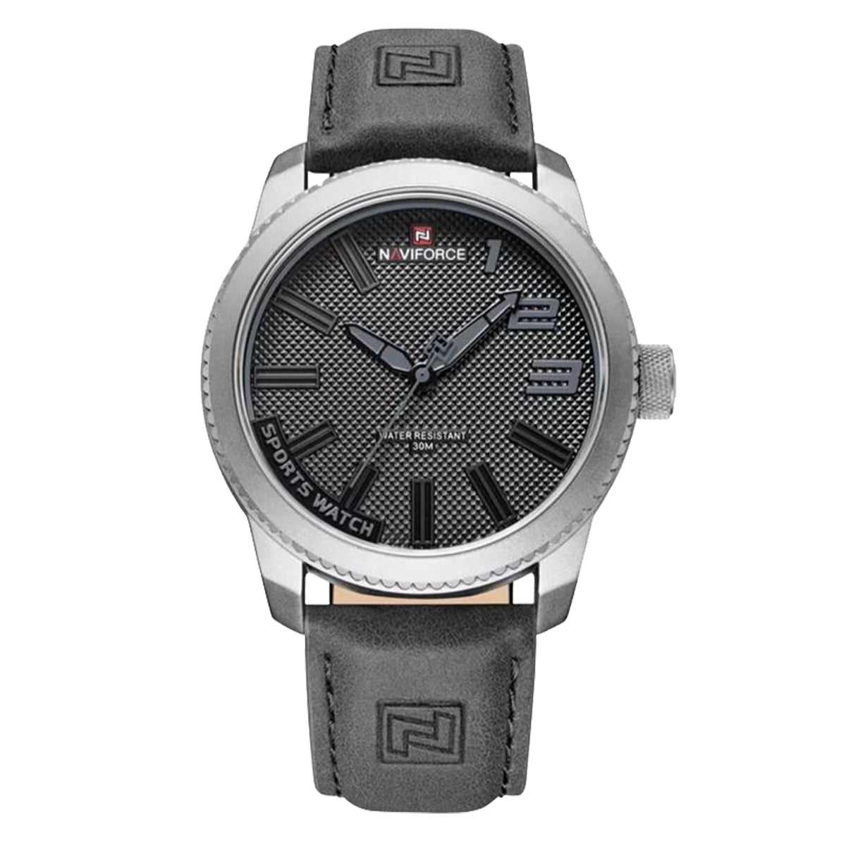 Reloj Naviforce clásico gris NAV-107 de moda con correa de cuero, 100% original de fábrica, garantía 1 año, el acompañante perfecto para el hombre actual.