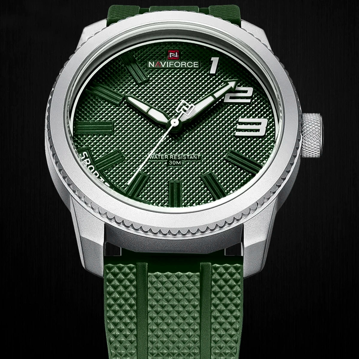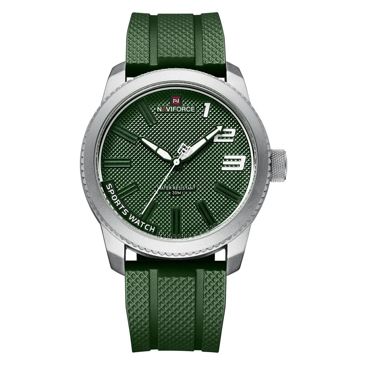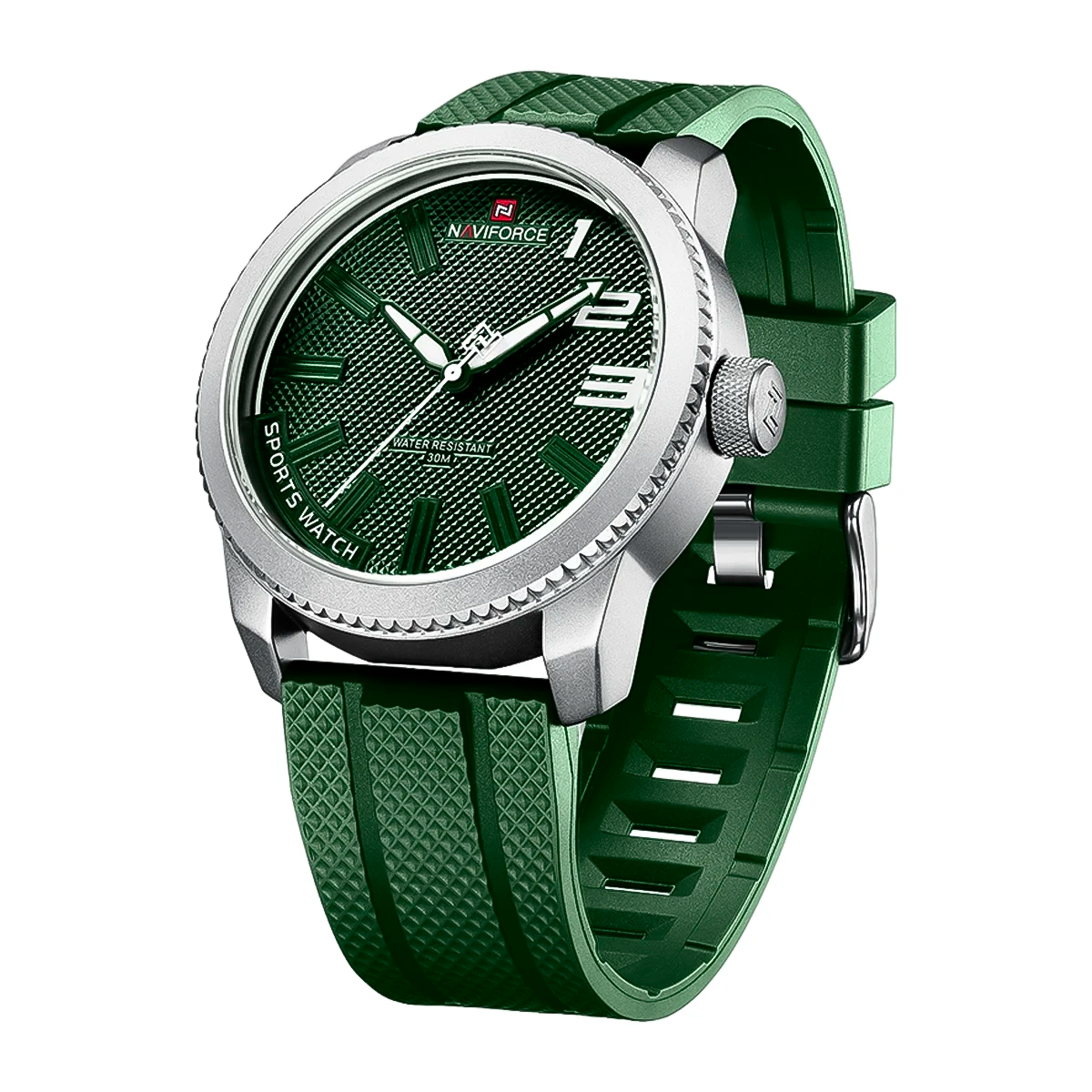 Reloj Naviforce clásico verde NAV-100 de moda con correa de silicona, 100% original de fábrica, garantía 1 año, el acompañante perfecto para el hombre actual.