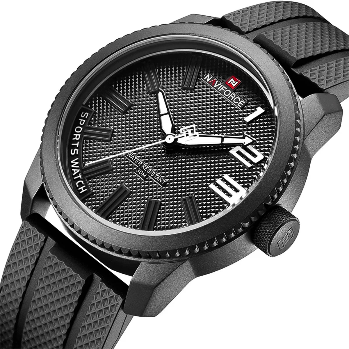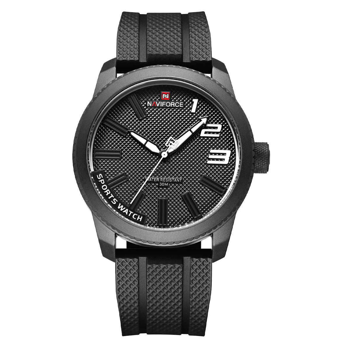 Reloj Naviforce clásico negro NAV-101 de moda con correa de silicona, 100% original de fábrica, garantía 1 año, el acompañante perfecto para el hombre actual.