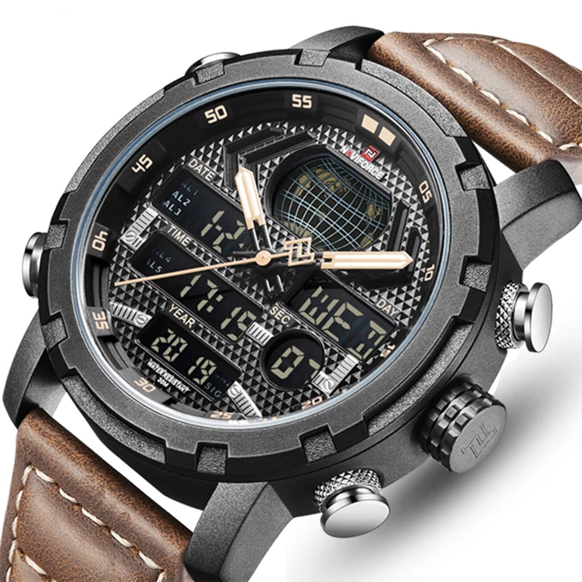 Reloj Naviforce Casual Marrón NAV-77 de moda con correa de cuero, 100% original de fábrica, garantía 1 año, el acompañante perfecto para el hombre actual.