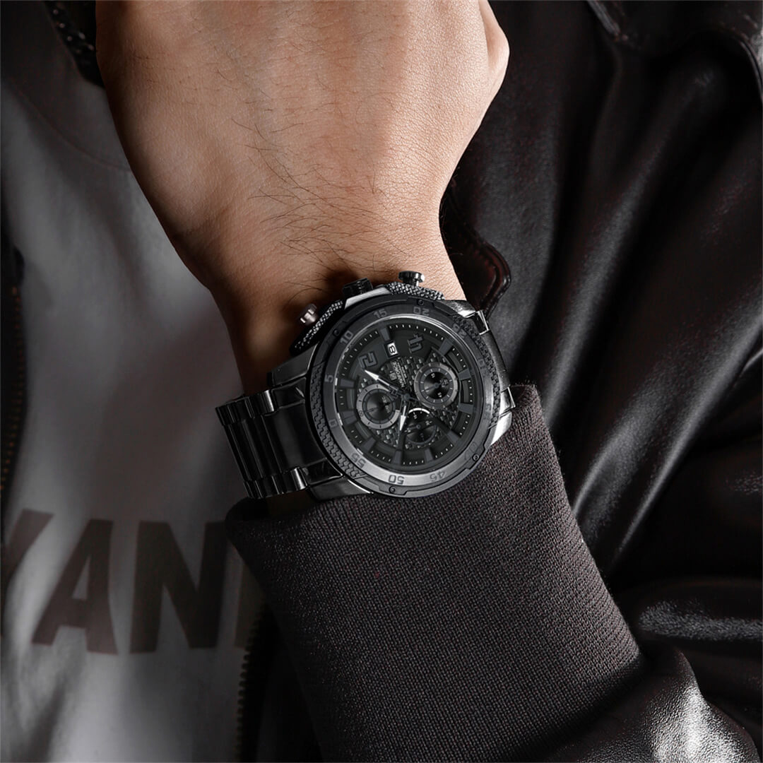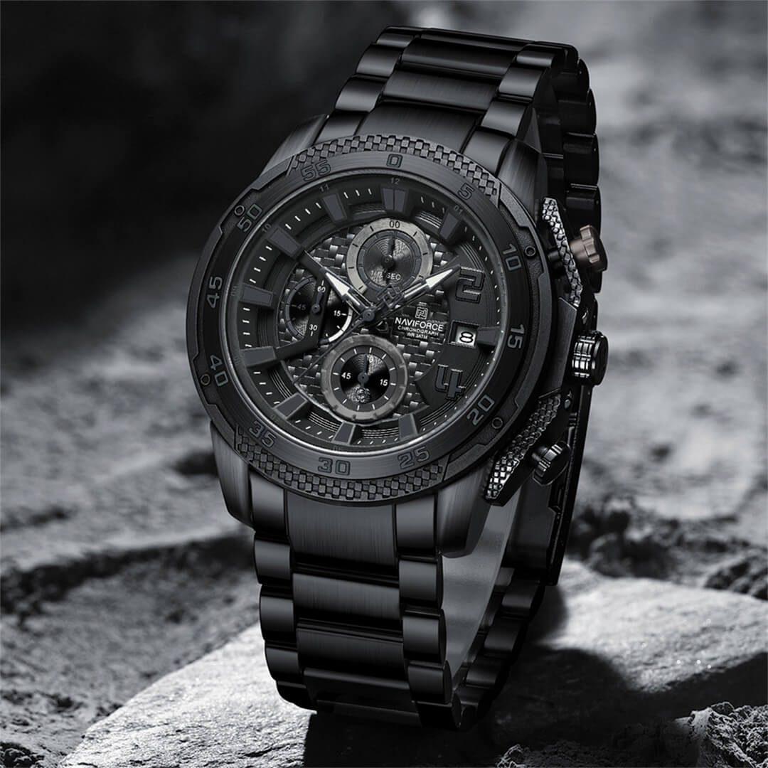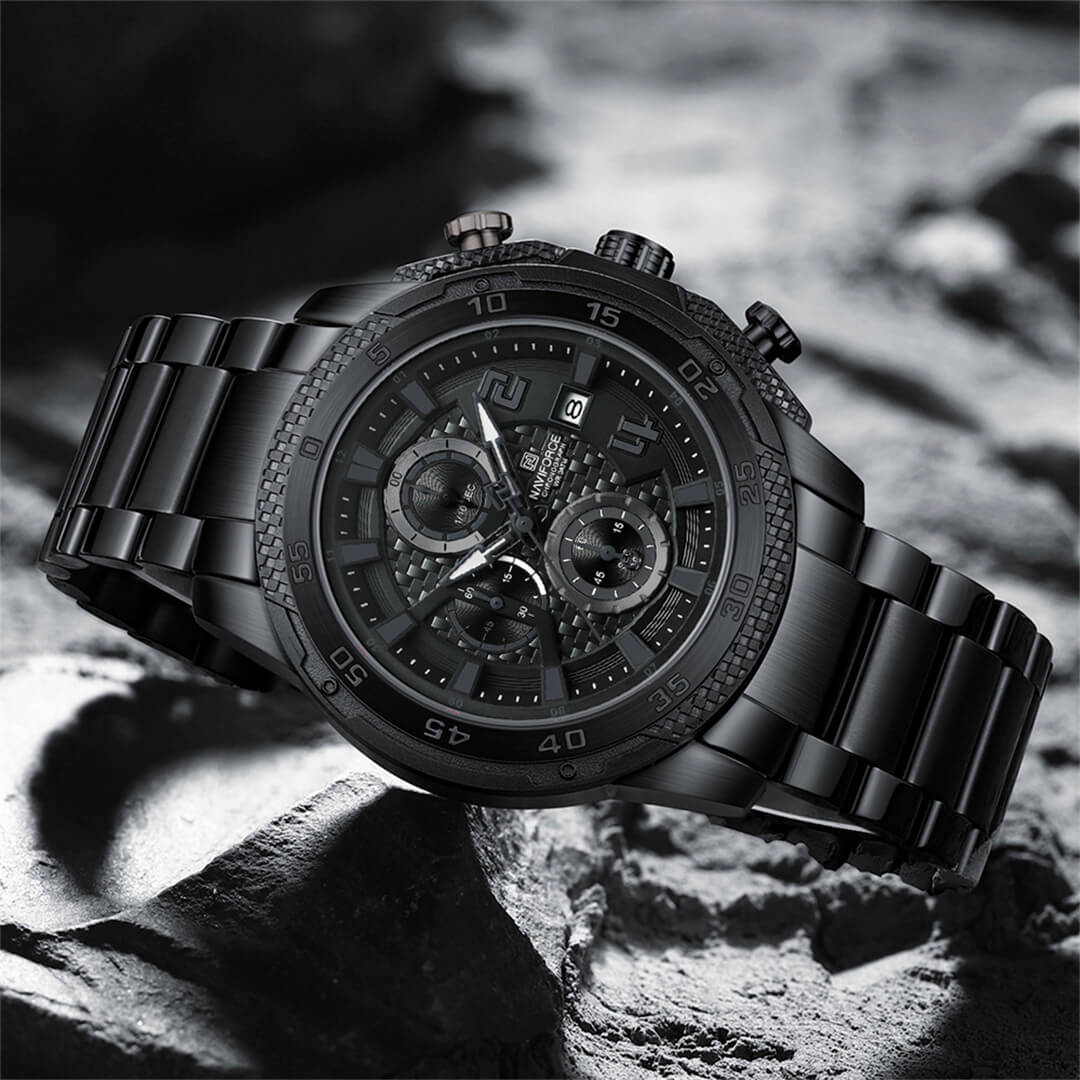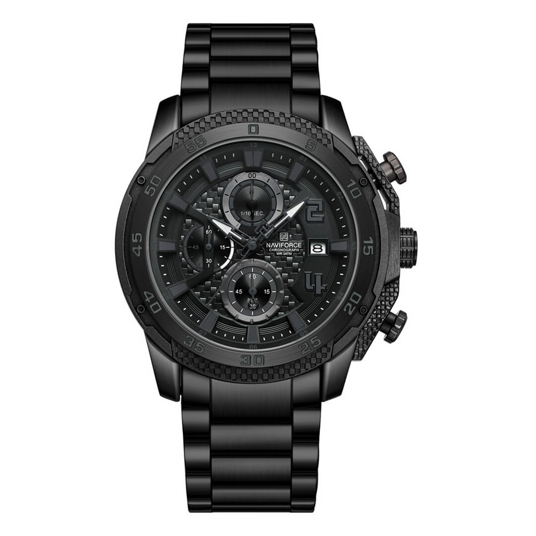 Reloj Naviforce negro NAV-138 de moda con correa de acero inoxidable, 100% original de fábrica, garantía 1 año, el acompañante perfecto para el hombre actual.