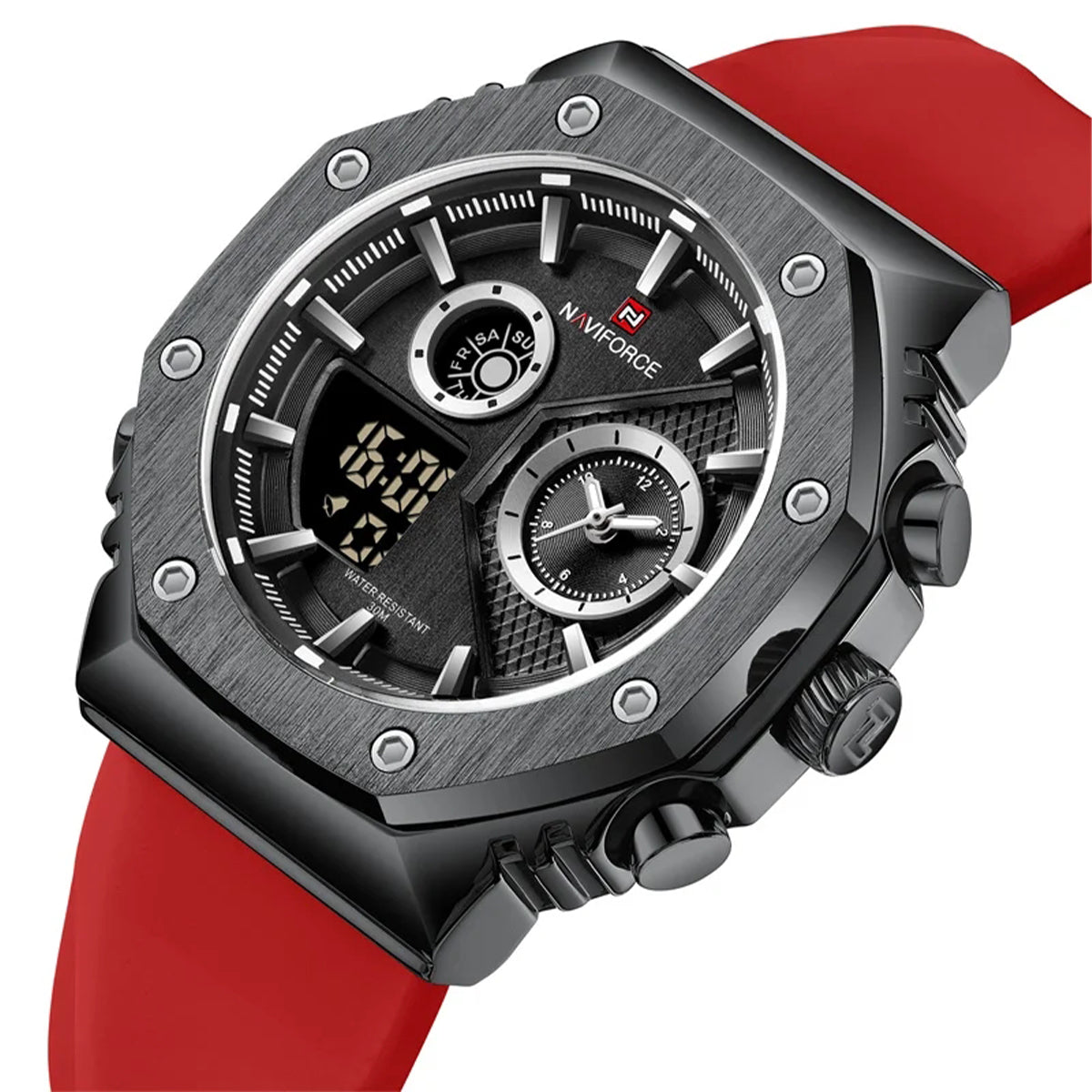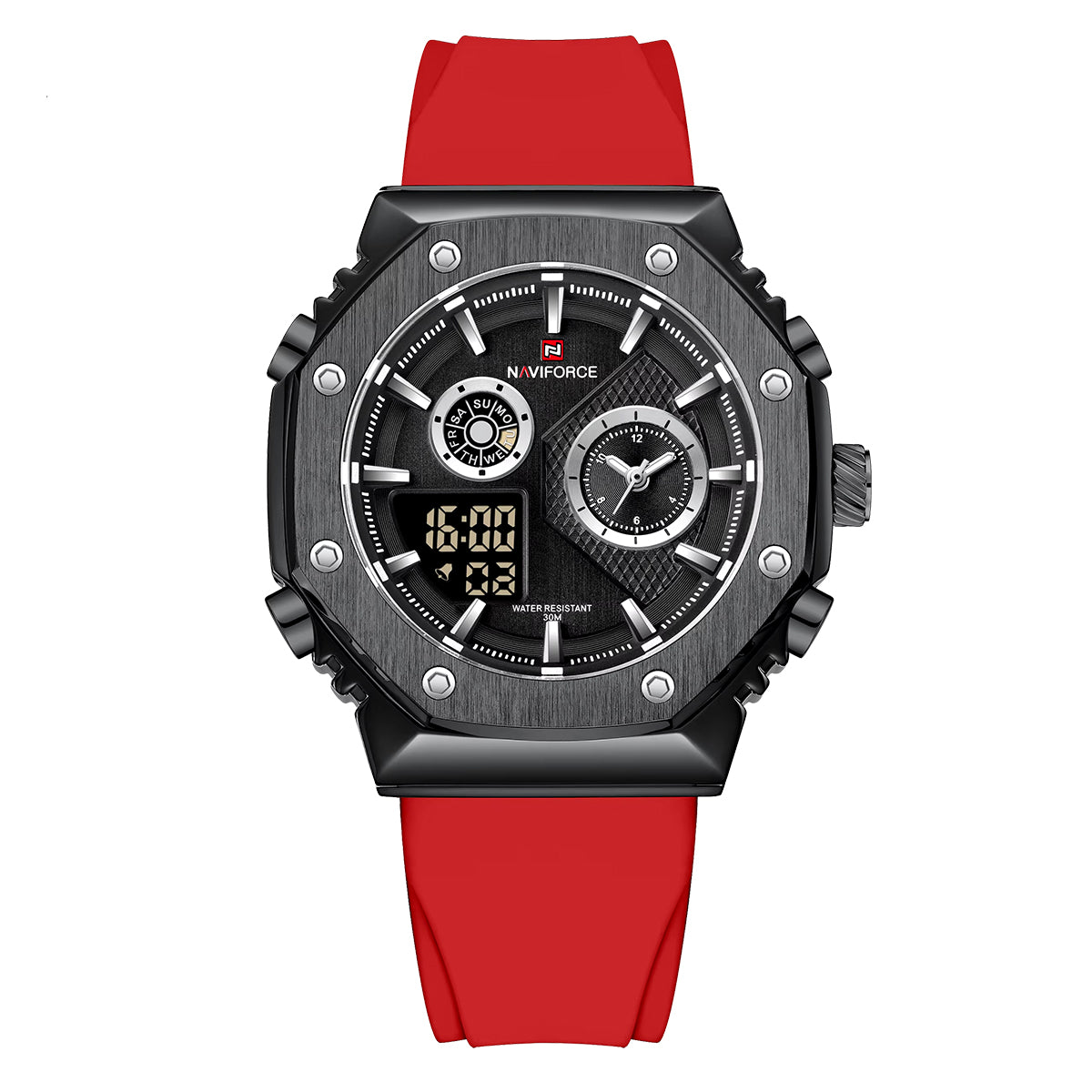 Reloj Naviforce rojo NAV-98 de moda con correa de silicona, 100% original de fábrica, garantía 1 año, el acompañante perfecto para el hombre actual.