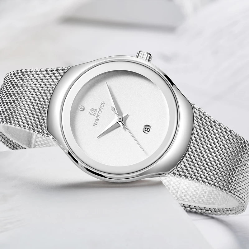 Reloj Naviforce Plateado con blanco NAV-M-2 de moda con correa de acero inoxidable, 100% original de fábrica, garantía 1 año, el acompañante perfecto para la mujer actual.
