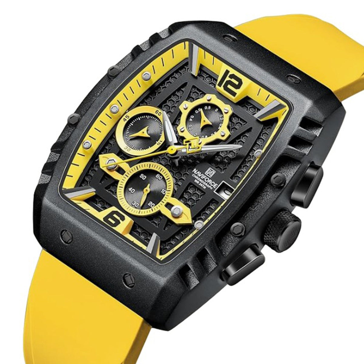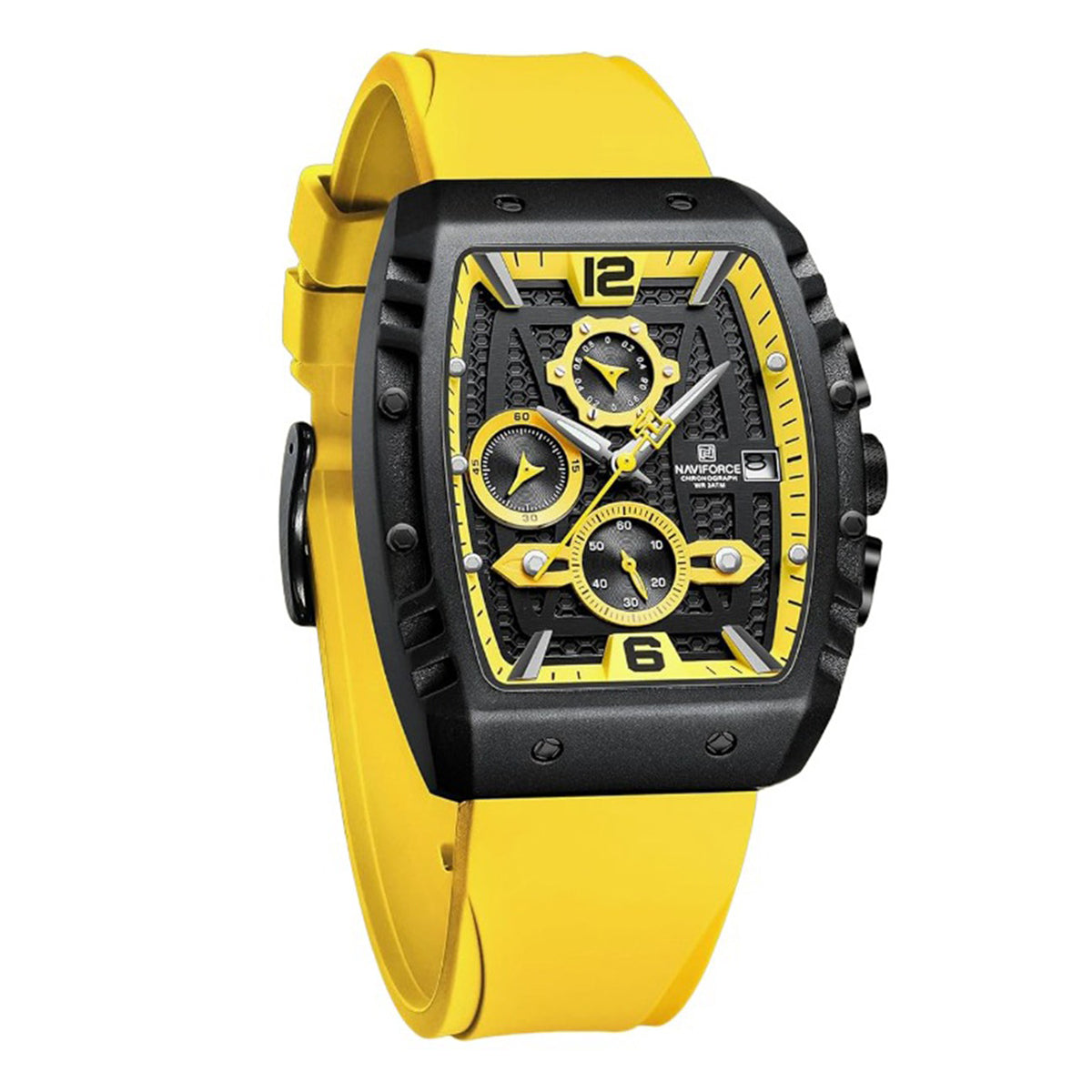 Reloj Naviforce retro amarillo NAV-119 de moda con correa de silicona, 100% original de fábrica, garantía 1 año, el acompañante perfecto para el hombre actual.