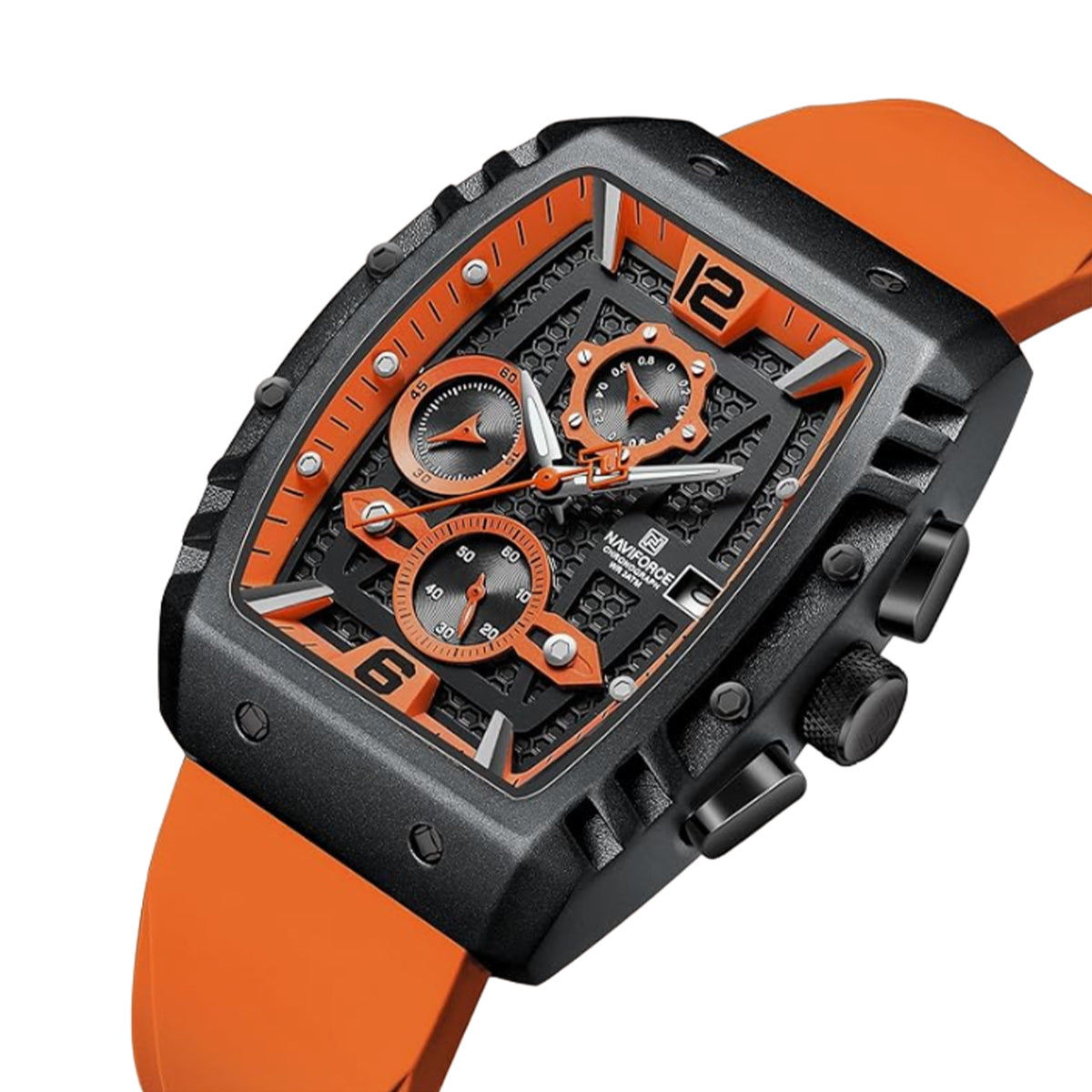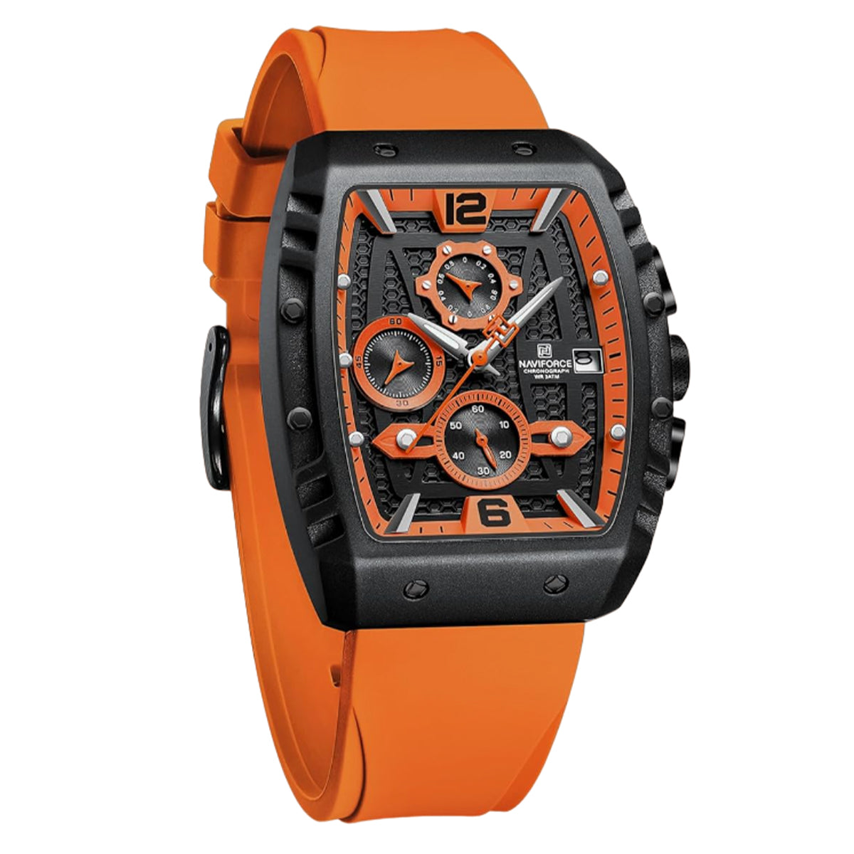 Reloj Naviforce Retro Naranja NAV-121 de moda con correa de silicona, 100% original de fábrica, garantía 1 año, el acompañante perfecto para el hombre actual.