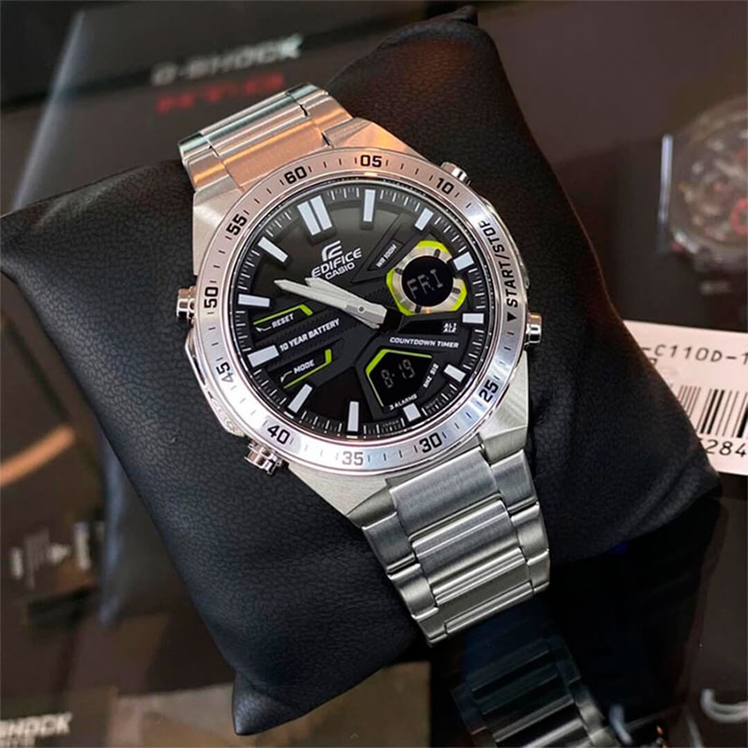 Pensado para quienes viven al máximo, este reloj ofrece una batería de 10 años de duración, lo que significa una década de confianza sin preocuparte por reemplazos. El EFV-C110DC-1A3V está diseñado para adaptarse a cualquier escenario: reuniones, entrenamientos o escapadas de aventura.