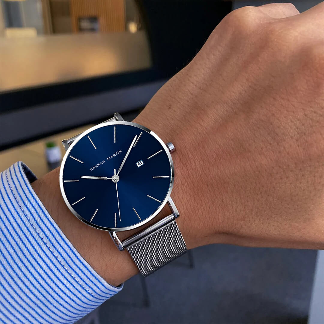 El Hannah Martin (HAN-32) combina elegancia moderna, estética premium y construcción metálica de alta resistencia. Su paleta azul marino con plateado lo convierte en un reloj sofisticado, refinado y perfecto para quienes quieren proyectar un estilo pulcro y ejecutivo.
