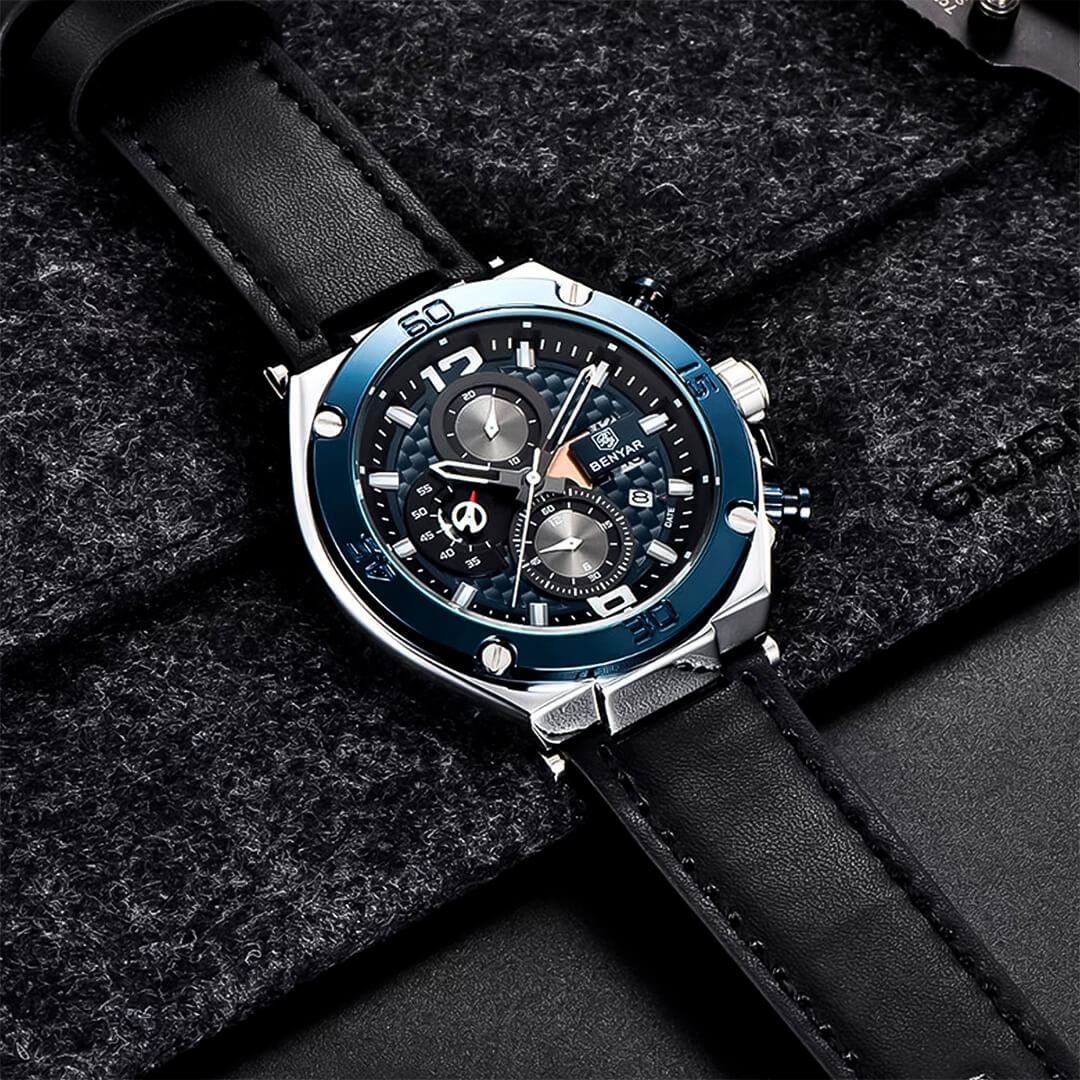 El Benyar (BEN-5) combina un diseño moderno, deportivo y sofisticado con una estética azul marino–oro rosa que destaca sin esfuerzo. Es el reloj ideal para el hombre que aprecia estilo, presencia y funcionalidad real en su día a día.