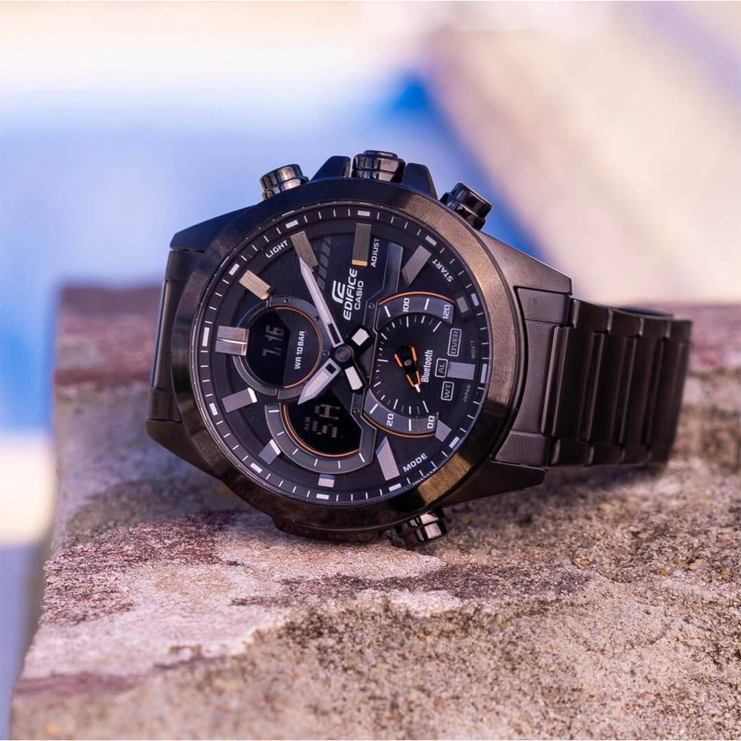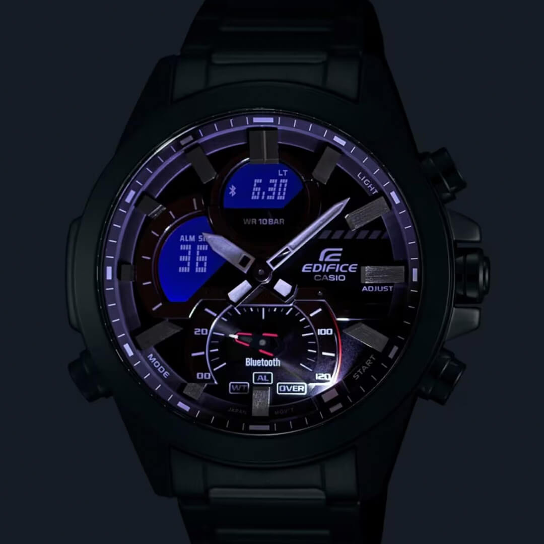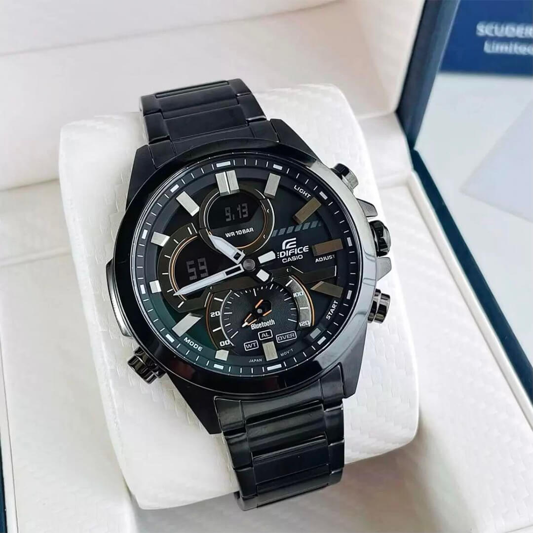 El Casio Edifice ECB-30DC-1A (EDF-45) es la fusión perfecta entre diseño deportivo premium y tecnología inteligente. Diseñado para el hombre moderno que exige precisión, conectividad y durabilidad, este reloj destaca por su Smartphone Link vía Bluetooth®, cronógrafo de alta precisión y hora mundial multizona, todo en una estructura de acero inoxidable robusta y elegante.
