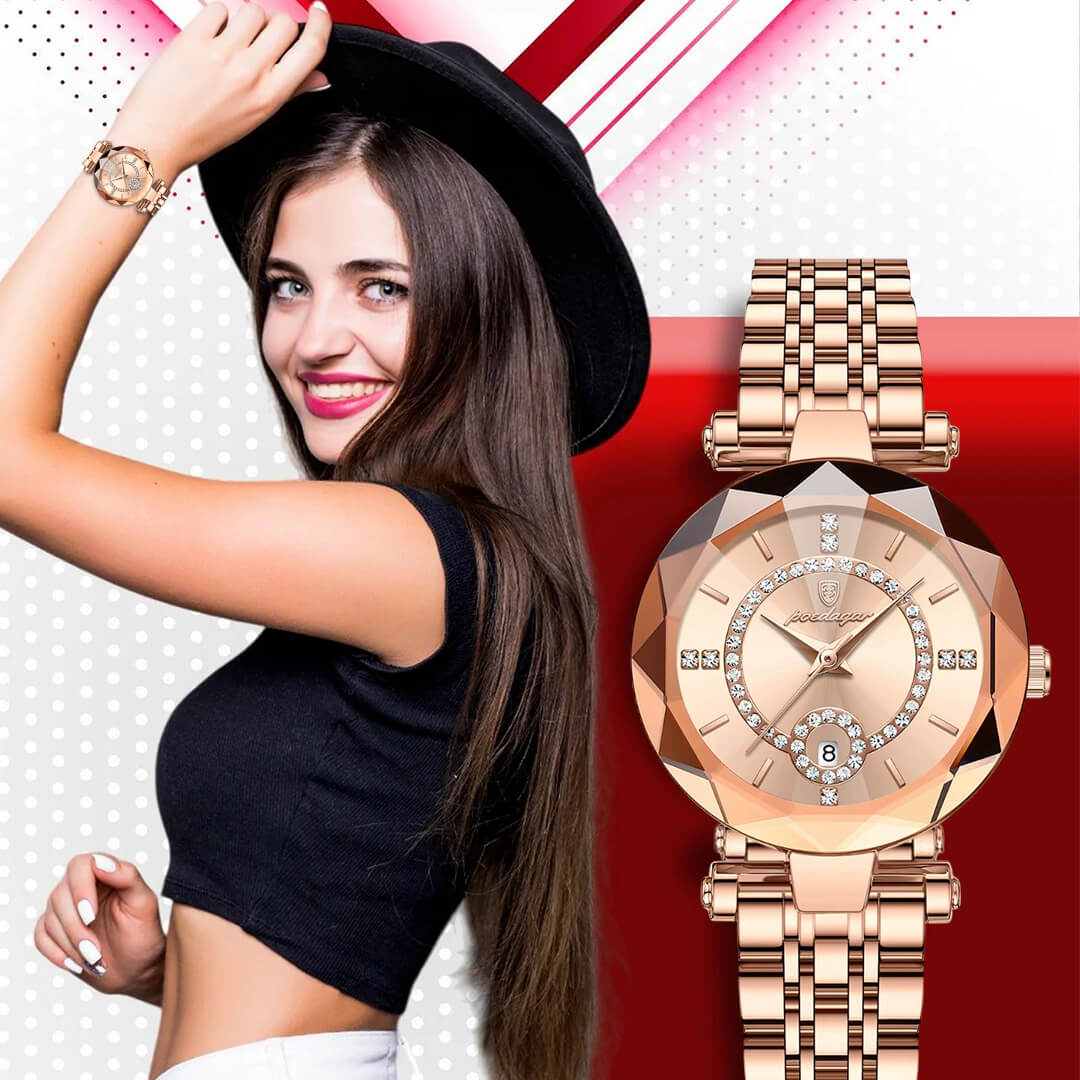 Reloj Poedagar oro rosa POE-M-12 de moda con correa de acero inoxidable, 100% original de fábrica, garantía 1 año, el acompañante perfecto para la mujer actual.