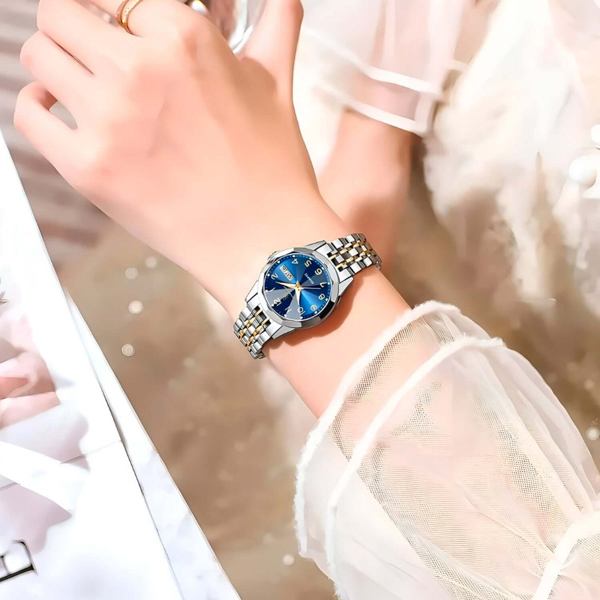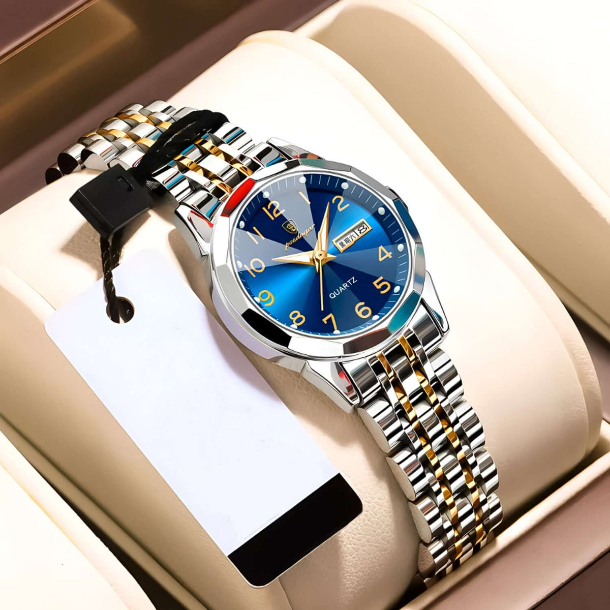 Reloj Poedagar plateado con azul POE-M-2 de moda con correa de acero inoxidable, 100% original de fábrica, garantía 1 año, el acompañante perfecto para la mujer actual.