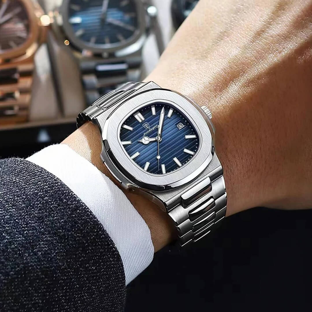 El Poedagar (POE-8) redefine la relojería de moda con un diseño octogonal en tono plateado que combina innovación y carácter. Su tablero azul aporta contraste atractivo, mientras que la correa de acero inoxidable garantiza resistencia y un estilo distintivo que no pasa desapercibido.