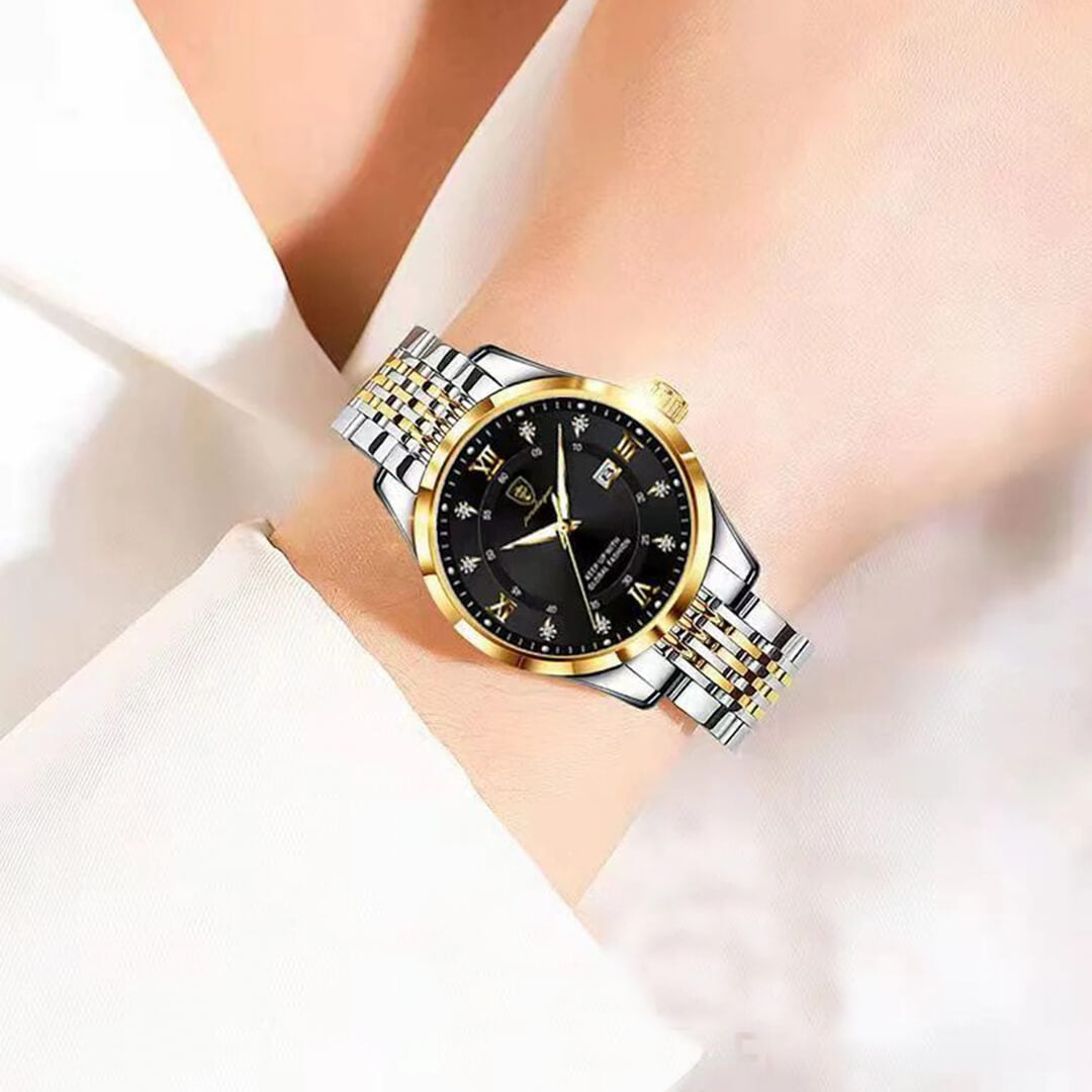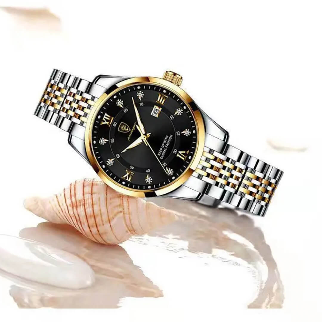 Reloj Poedagar plateado con negro POE-M-4 de moda con correa de acero inoxidable, 100% original de fábrica, garantía 1 año, el acompañante perfecto para la mujer actual.