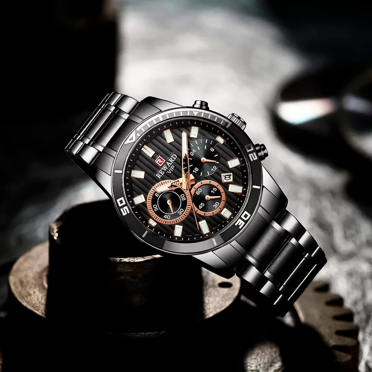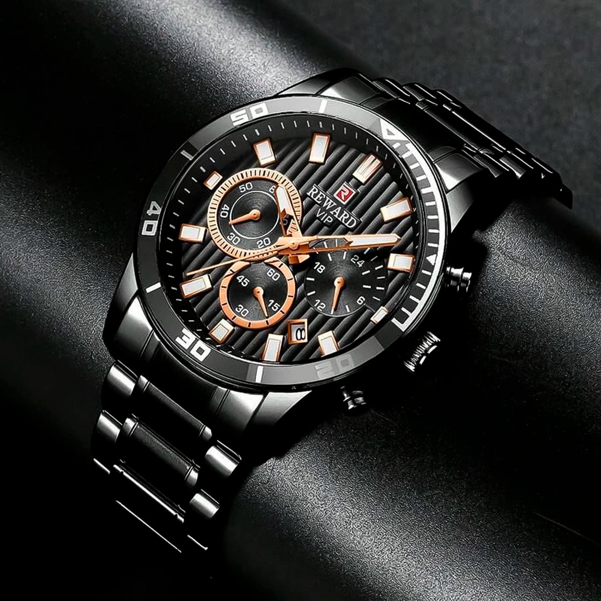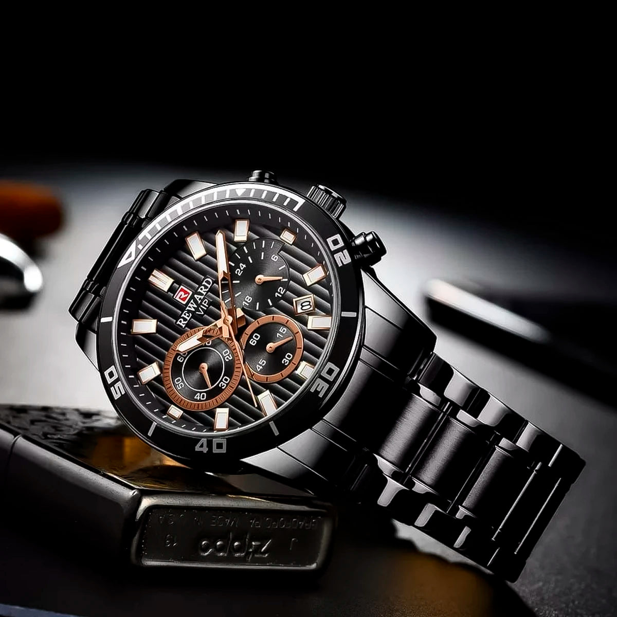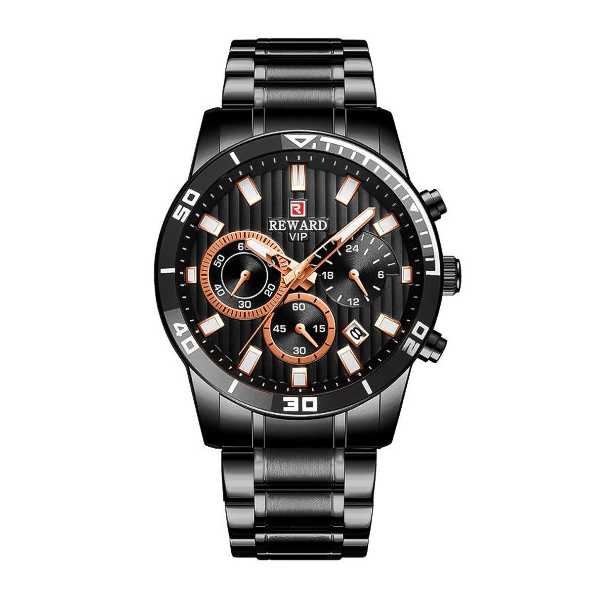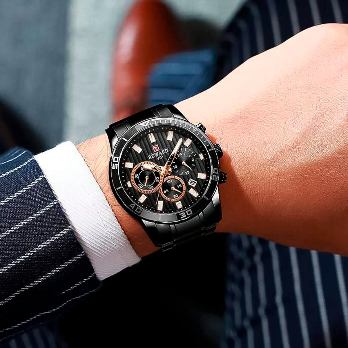 Reloj Reward Acero Negro REW-3 de moda con correa de acero, 100% original de fábrica, garantía 1 año, el acompañante perfecto para el hombre actual.