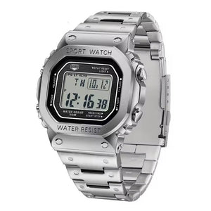 El Sanda (SAN-27) es un reloj digital diseñado para el hombre moderno que exige precisión, estilo y resistencia en un solo accesorio. Su estructura metálica en acabado negro, combinada con una correa de acero inoxidable, ofrece un enfoque robusto y elegante, ideal para quienes buscan funcionalidad sin sacrificar presencia.