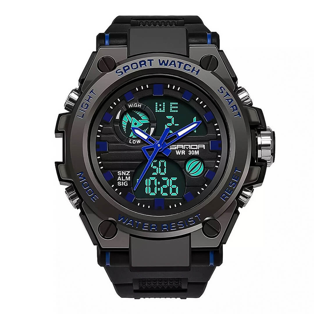 El Sanda (SAN-1) es el reloj diseñado para el hombre dinámico que exige durabilidad, multifuncionalidad y estilo moderno en un solo accesorio. Su estética deportiva en negro con detalles metálicos combina perfectamente con su construcción robusta, mientras que su sistema analógico-digital ofrece la mezcla ideal entre elegancia clásica y practicidad contemporánea.