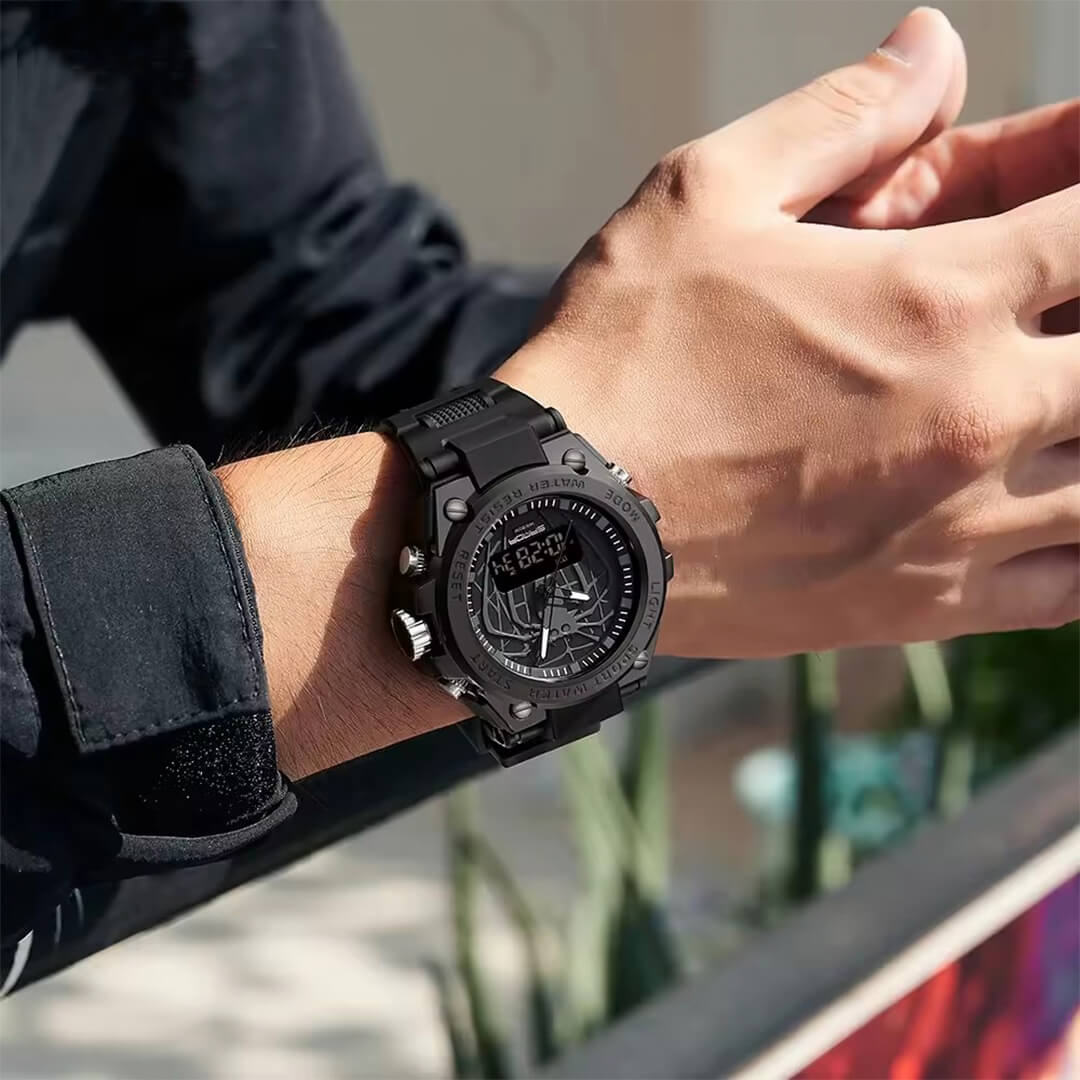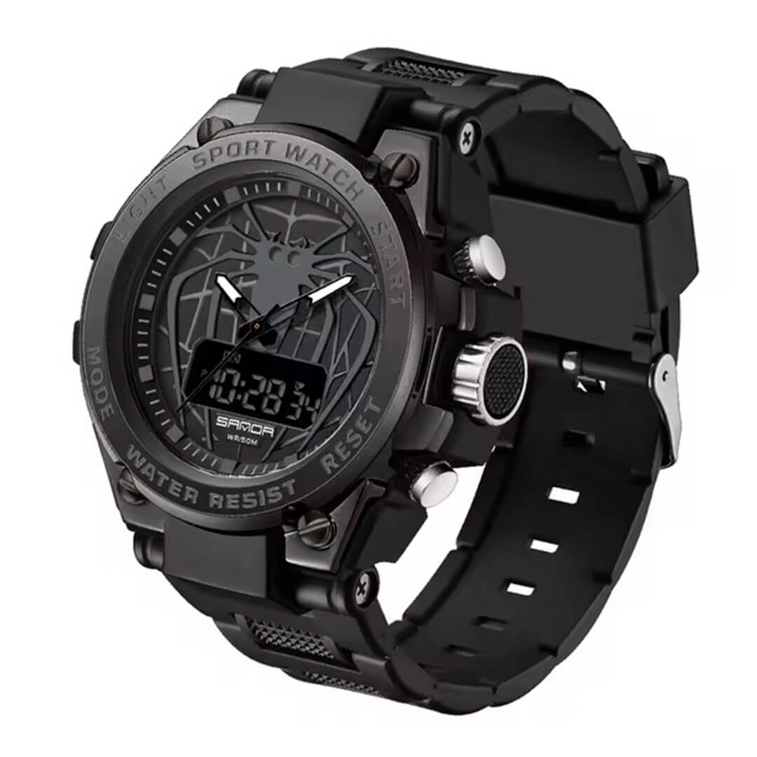 Reloj Sanda Silicona Negro con Diseño Araña SAN-13 de moda con correa de silicona, 100% original de fábrica, garantía 1 año, el acompañante perfecto para el hombre actual.