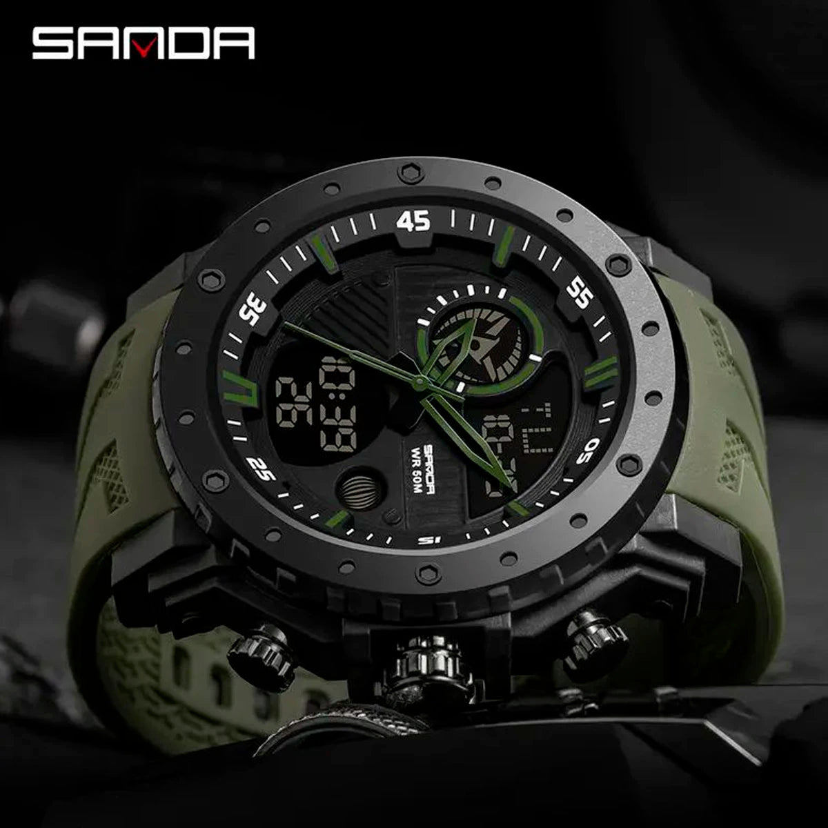 Reloj Sanda Silicona Verde-Negro SAN-6 de moda con correa de silicona, 100% original de fábrica, garantía 1 año, el acompañante perfecto para el hombre actual.