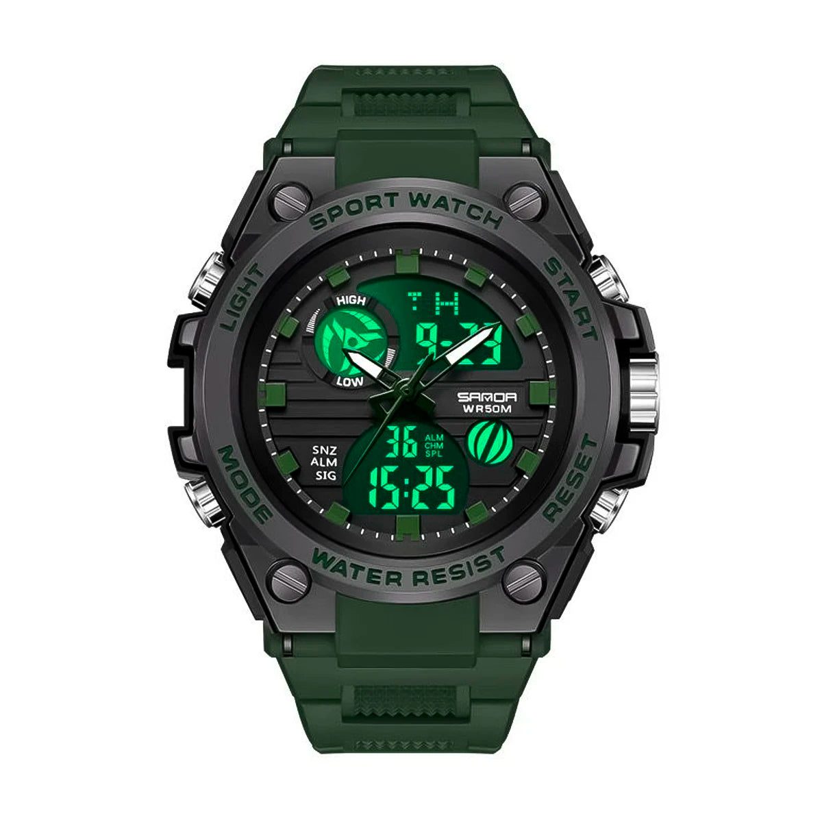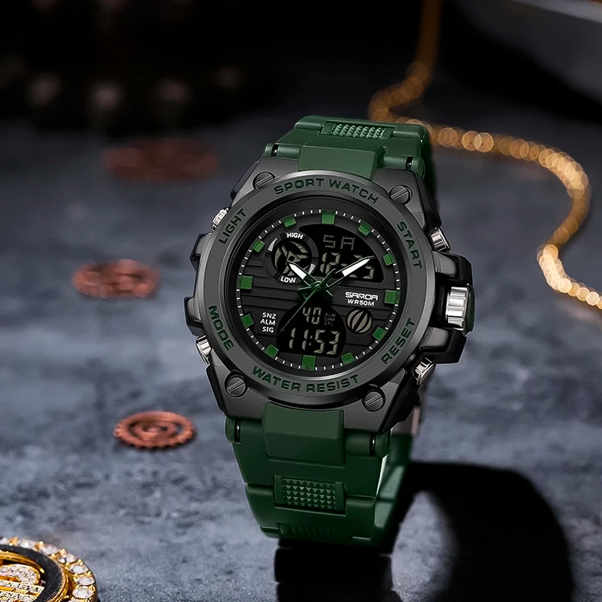 Reloj Sanda Silicona Verde SAN-9 de moda con correa de silicona, 100% original de fábrica, garantía 1 año, el acompañante perfecto para el hombre actual.