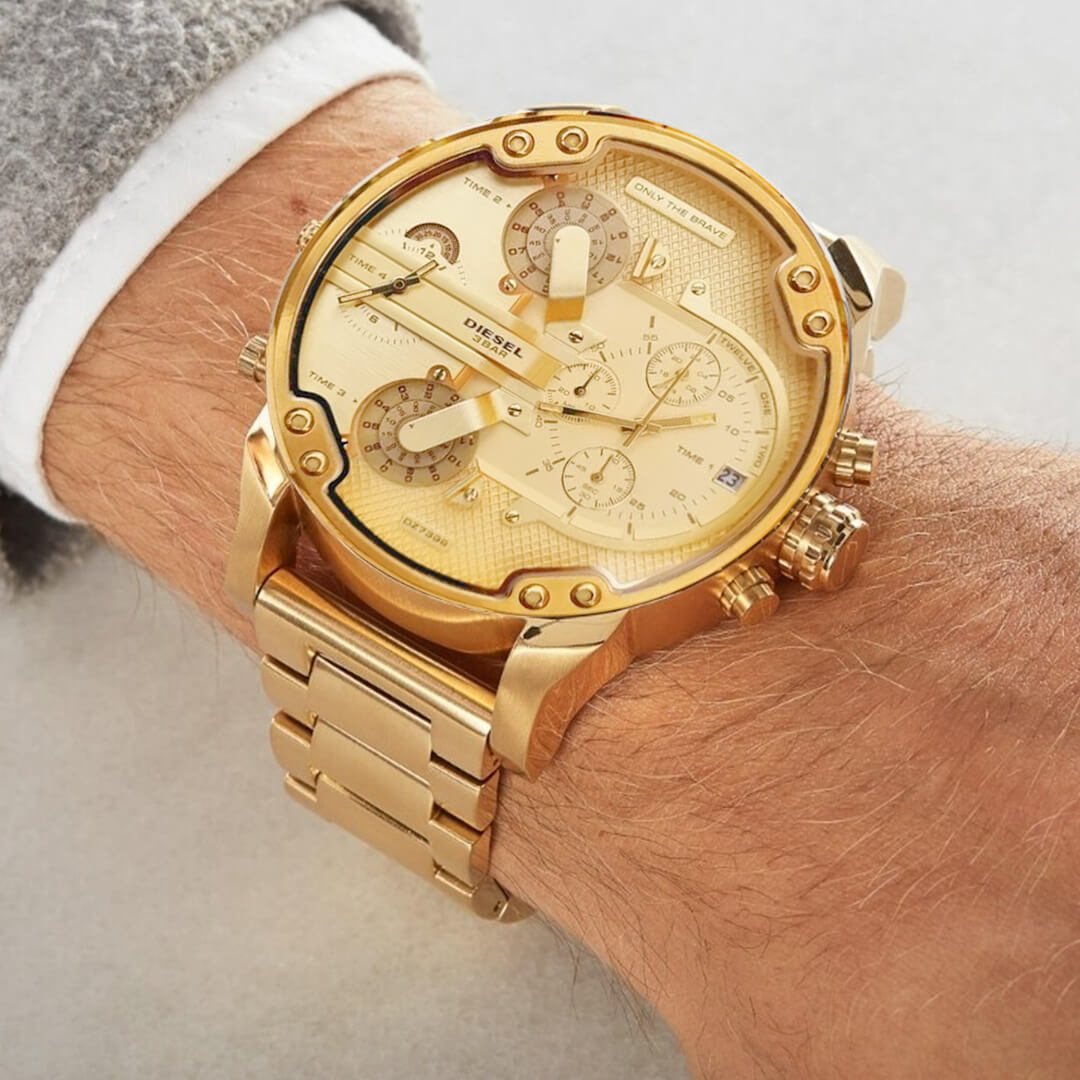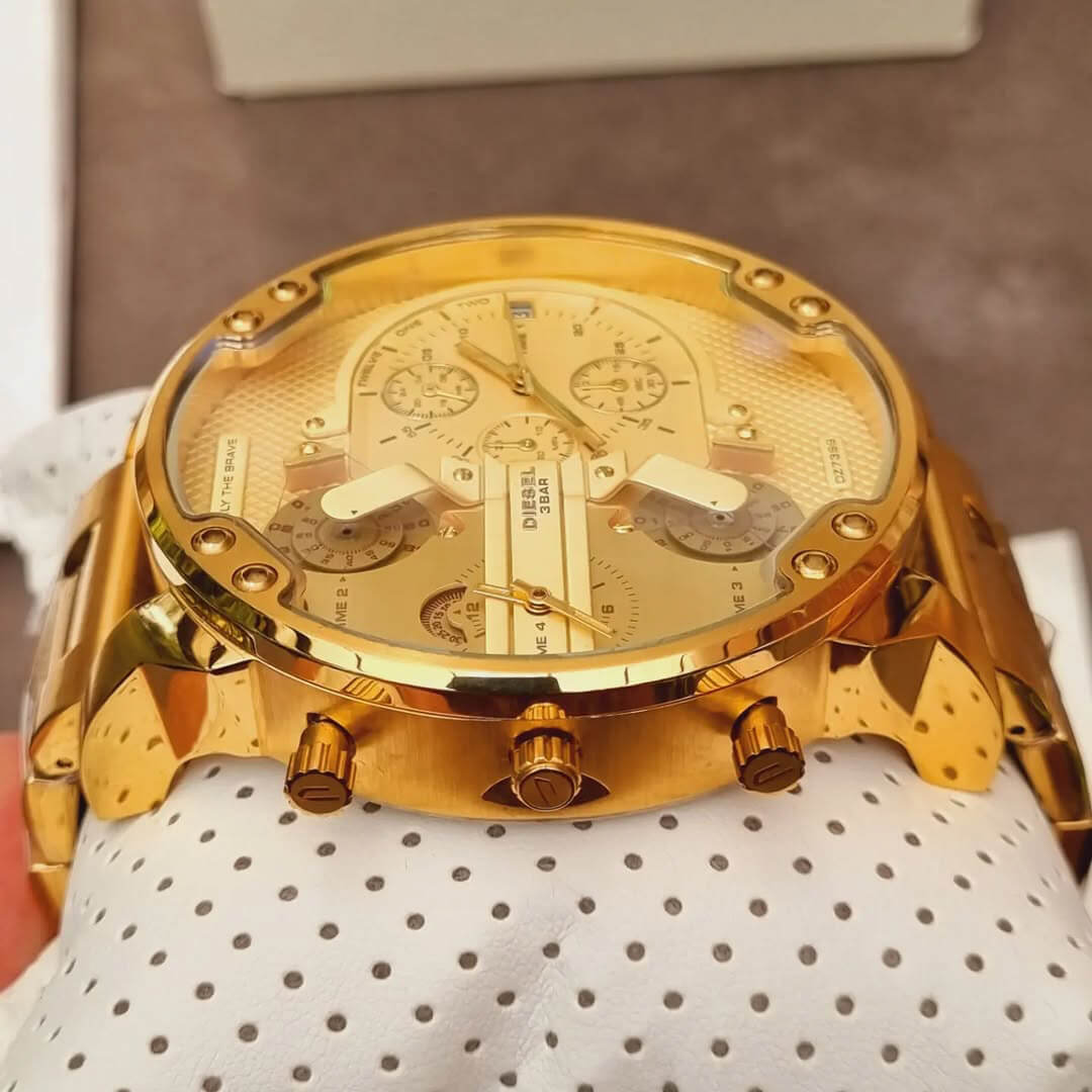 - Estilo Diesel completamente original: Acabado dorado total, construcción sólida y presencia inconfundible.