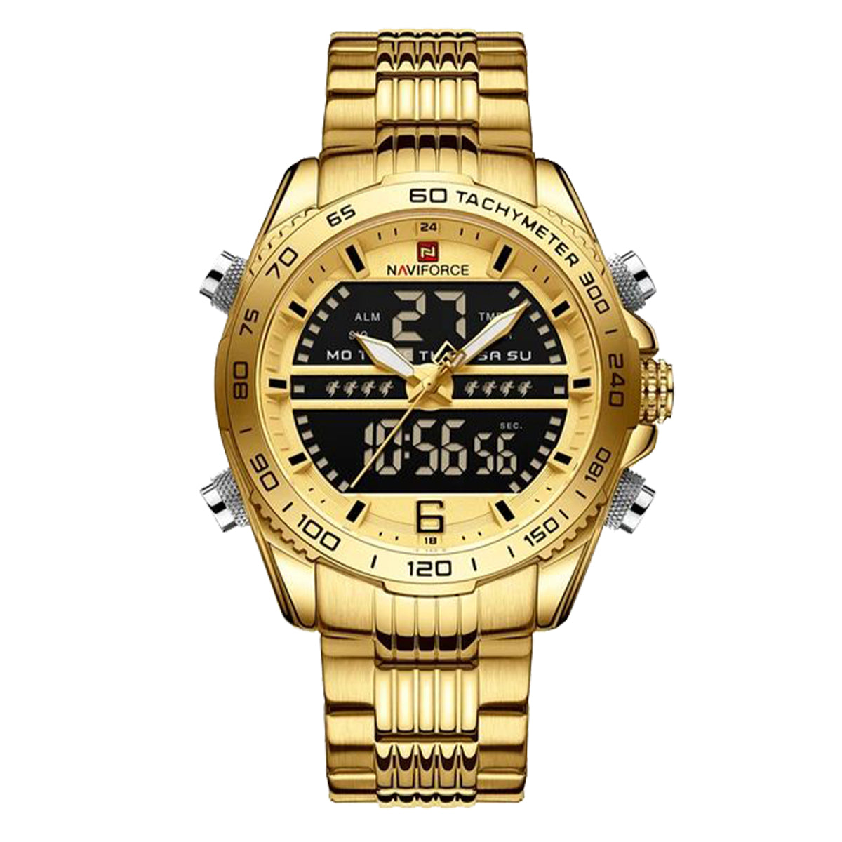 El Naviforce (NAV-84) es un reloj casual-deportivo para hombre que combina estética sobria, tecnología análogo-digital y alta funcionalidad.