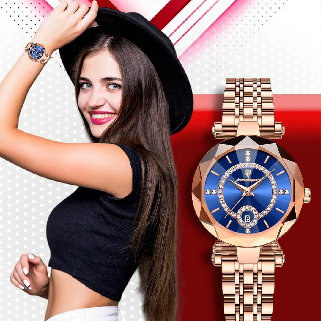 Reloj Poedagar oro rosa con azul POE-M-11 de moda con correa de acero inoxidable, 100% original de fábrica, garantía 1 año, el acompañante perfecto para la mujer actual.