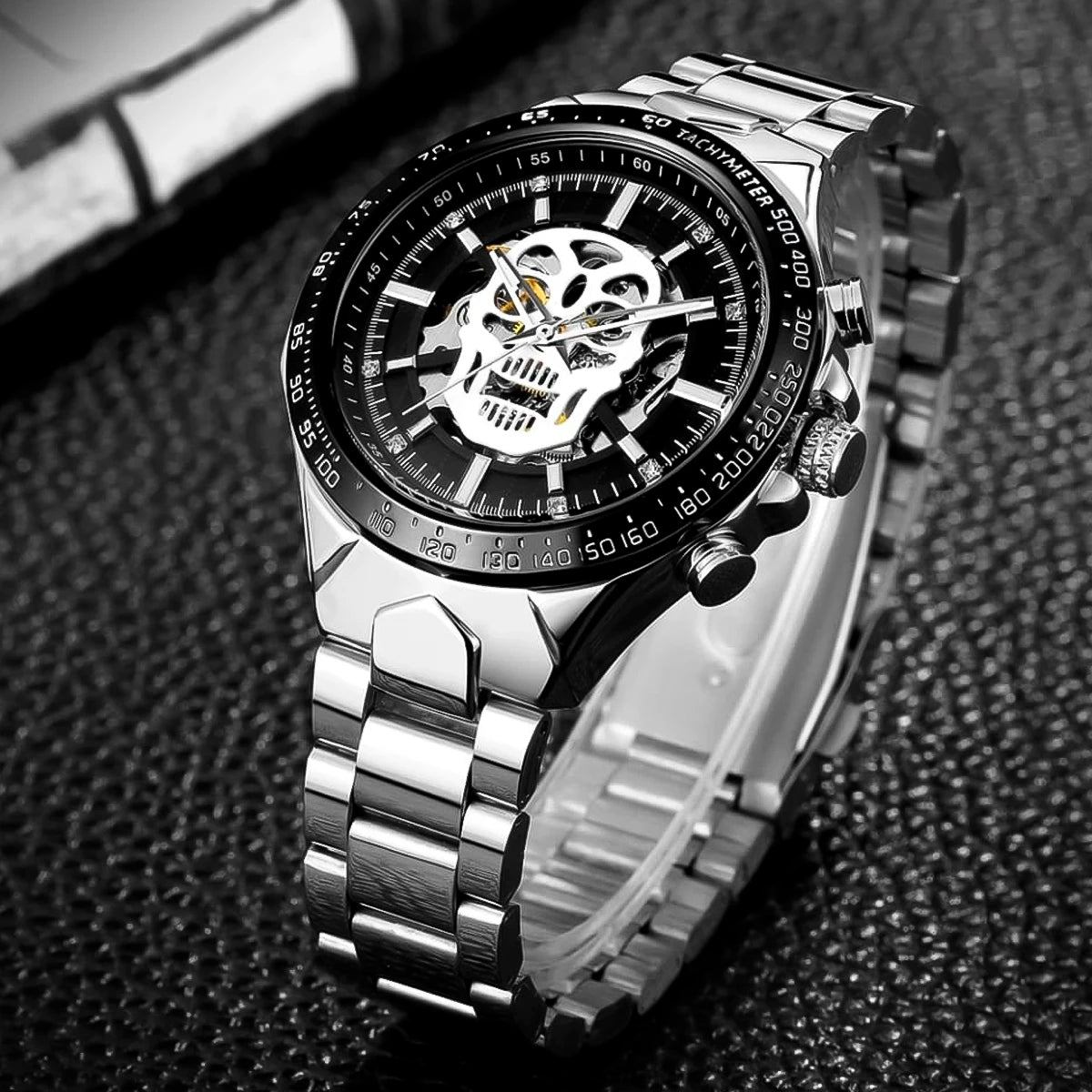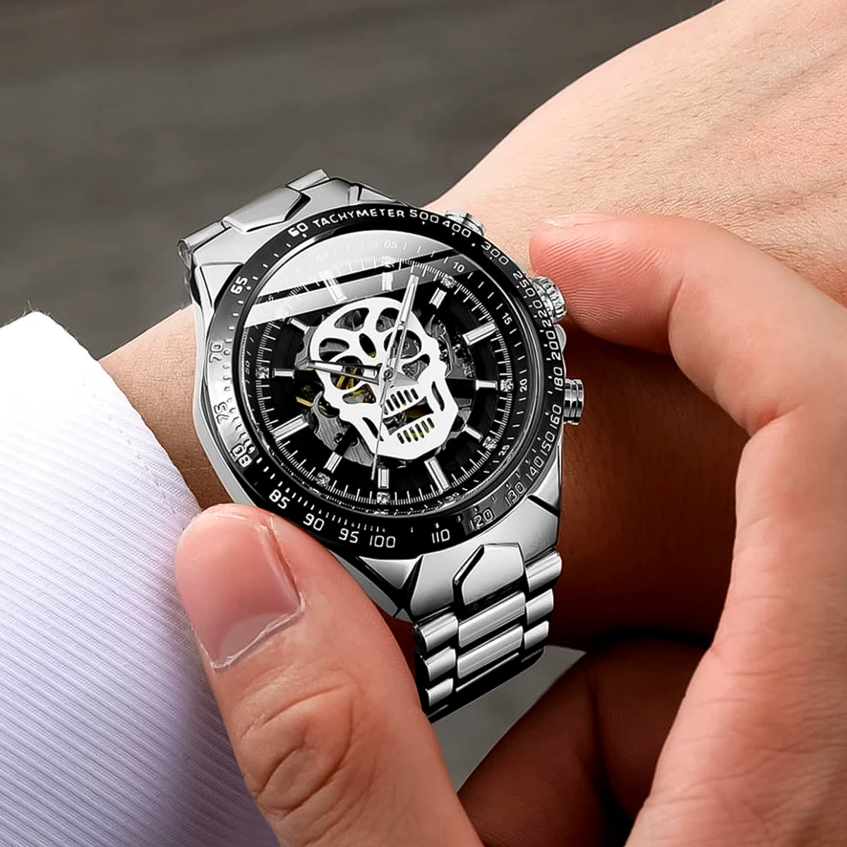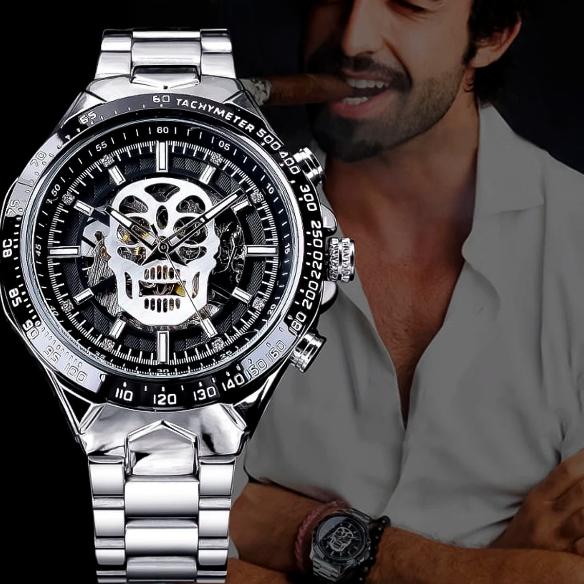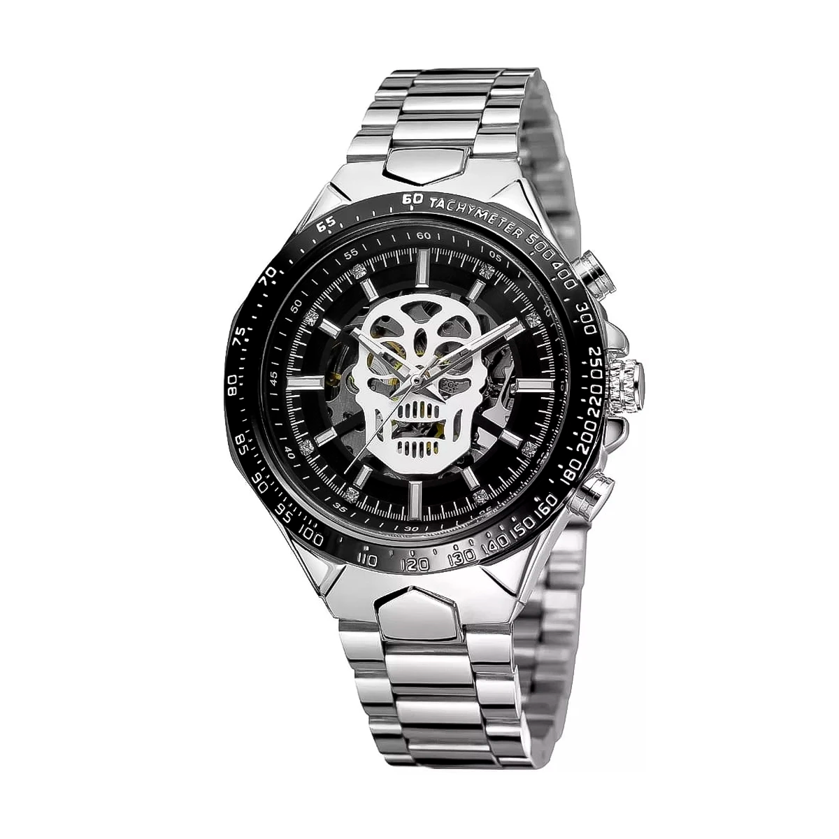 Reloj marca Winner Mecánico Plata Esqueleto WIN-11 de moda en acero inoxidable, 100% original de fábrica, garantía 1 año, el acompañante perfecto para el hombre actual.