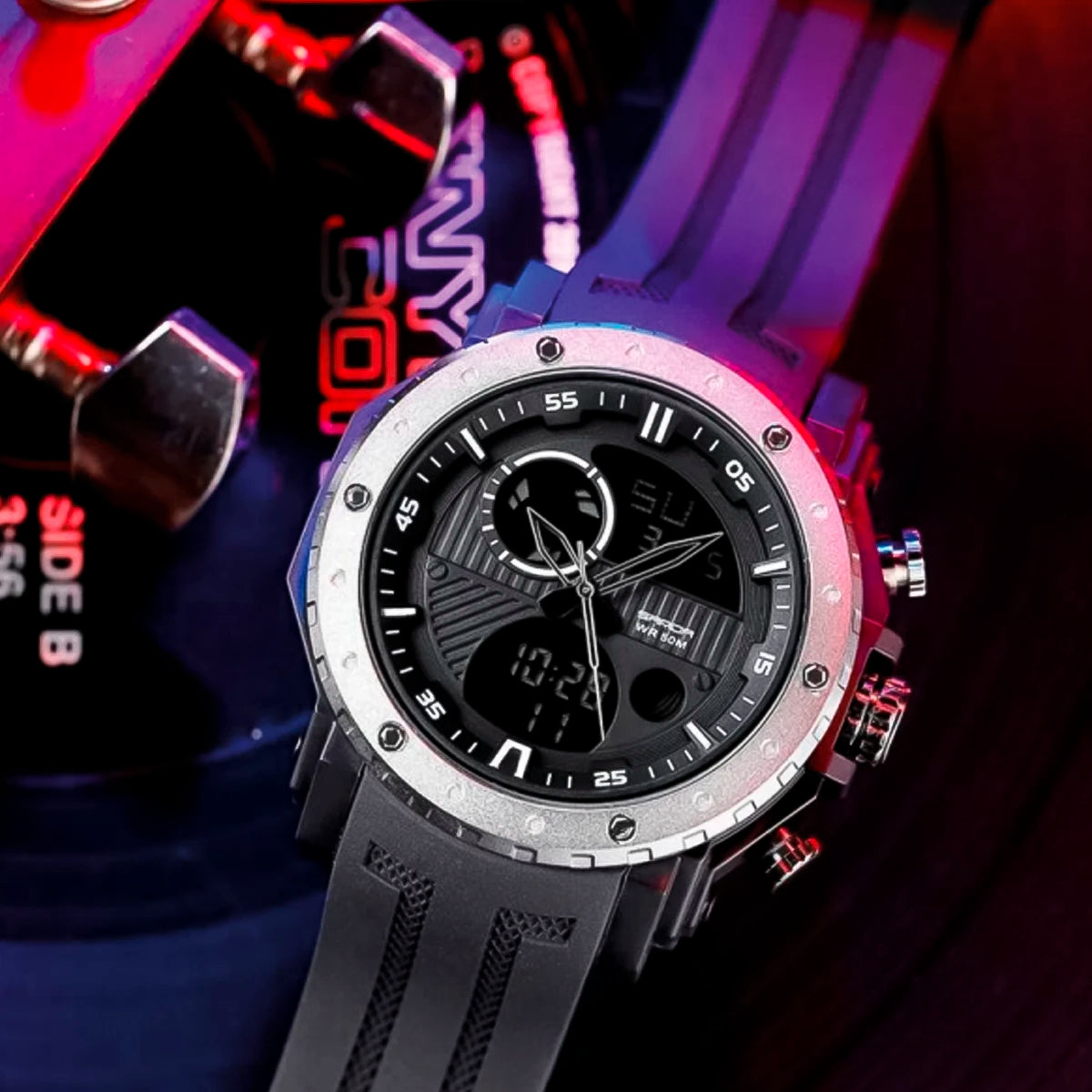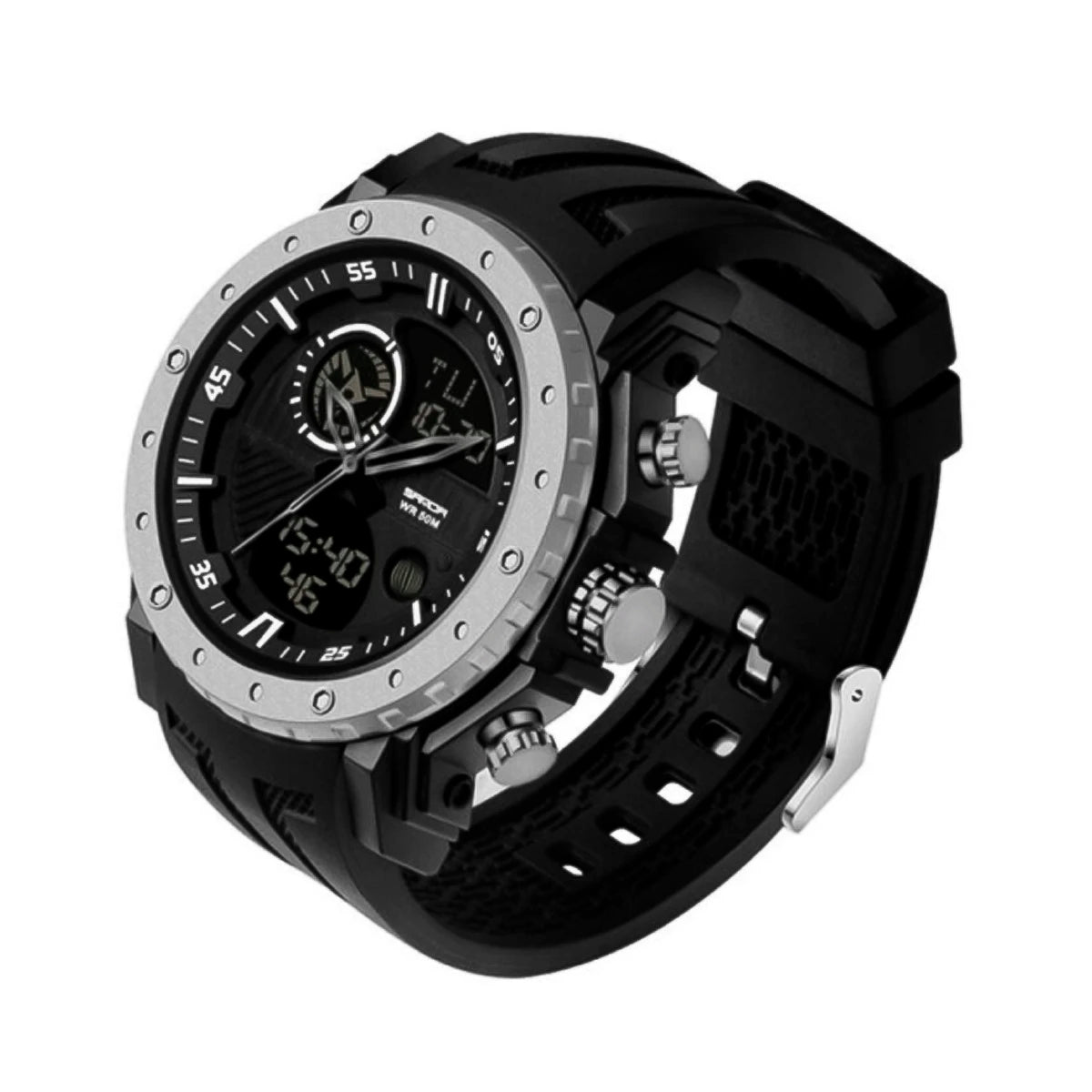 Reloj Sanda Silicona Negro con Gris SAN-5 de moda con correa de silicona, 100% original de fábrica, garantía 1 año, el acompañante perfecto para el hombre actual.
