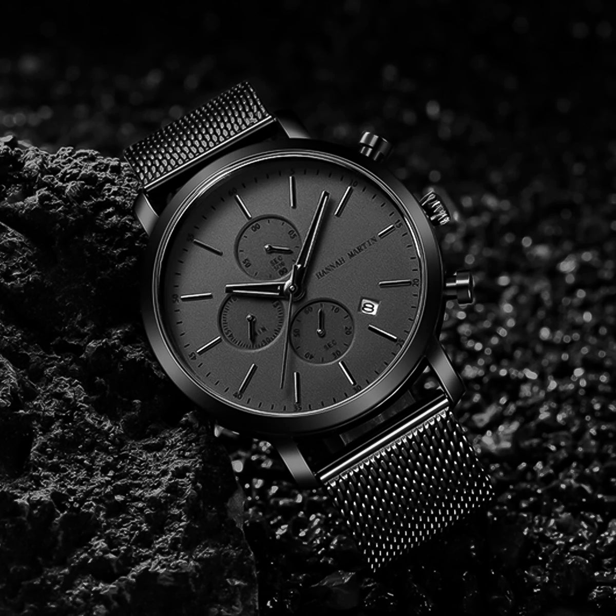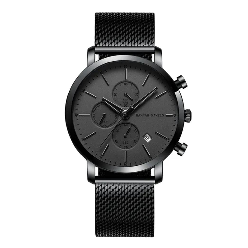 Reloj Hannah Martin malla negro HAN-24 de moda con correa de acero inoxidable, 100% original de fábrica, garantía 1 año, el acompañante perfecto para el hombre actual.