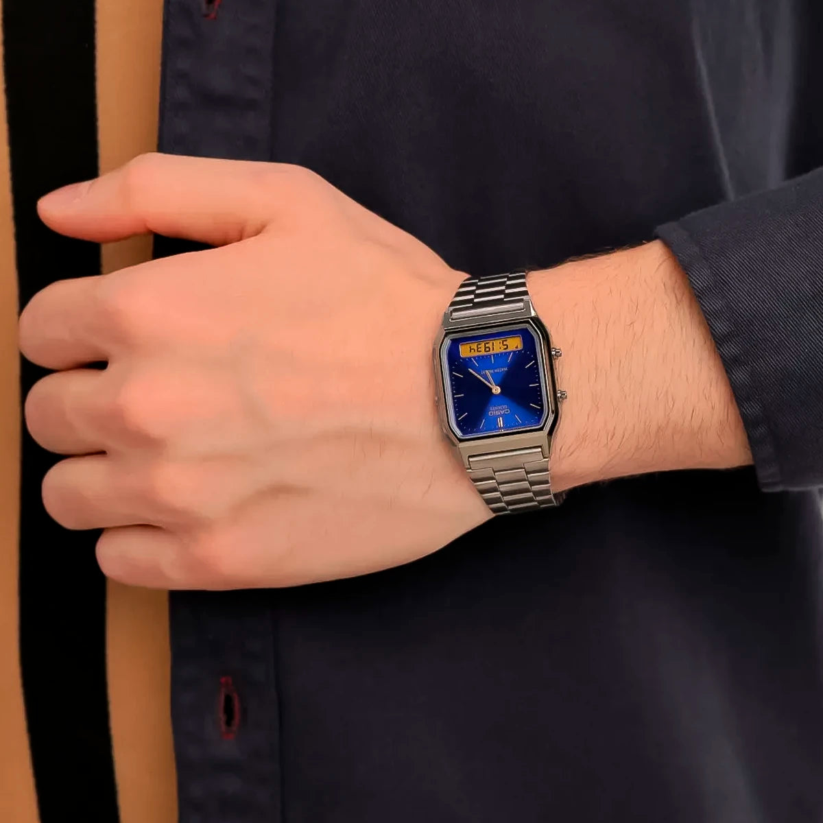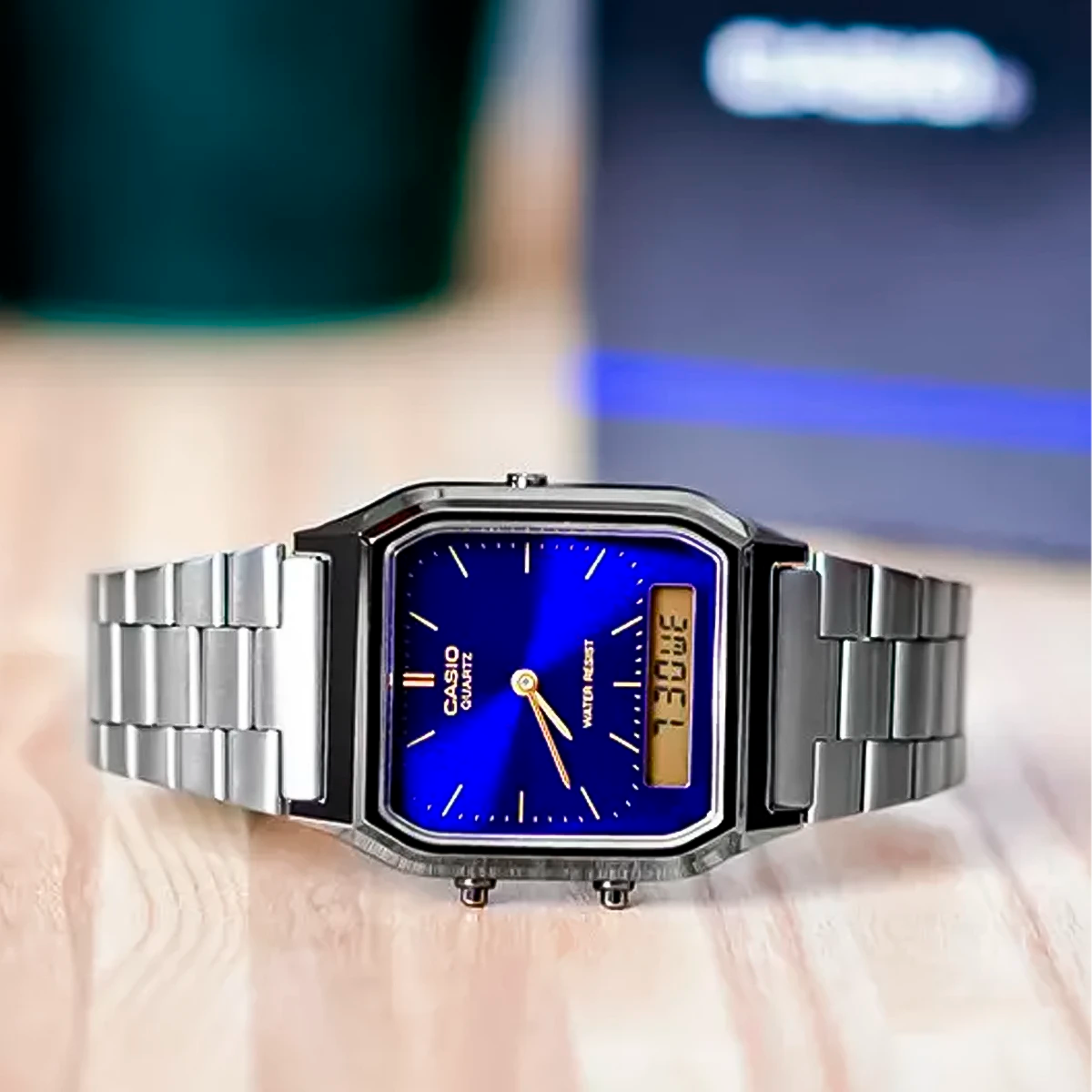 El Casio AQ-230GG-2A es un ícono del diseño retro que combina elegancia minimalista con funcionalidad práctica. Su formato analógico-digital ofrece lo mejor de ambos mundos: la estética clásica de manecillas limpias y la precisión informativa de una pantalla digital discreta. Ligero, compacto y versátil, es ideal para quienes buscan un reloj atemporal que encaje tanto en looks formales como casuales.