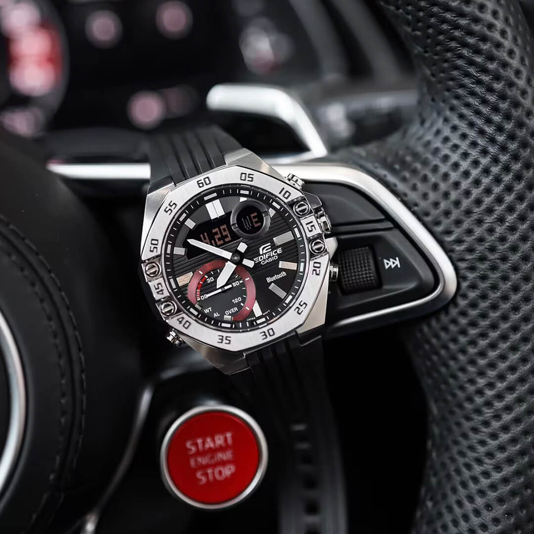 El Casio Edifice ECB-10P-1A es un cronógrafo híbrido de alto rendimiento diseñado para hombres que exigen conectividad inteligente, precisión automática y una estética deportiva de nivel profesional. Su marco octogonal de acero inoxidable y su integración con smartphone lo convierten en una herramienta estratégica para la gestión del tiempo en entornos exigentes, ejecutivos y urbanos.