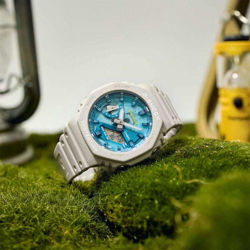 Gracias a su conectividad Bluetooth y su compatibilidad con la app G-SHOCK MOVE, puedes registrar, medir y optimizar tu rendimiento en cada entrenamiento. Con un look refrescante en blanco con azul cobalto y verde oceánico, además de un dial con efecto metálico que mejora la legibilidad, es el reloj ideal para quienes entrenan con estilo.