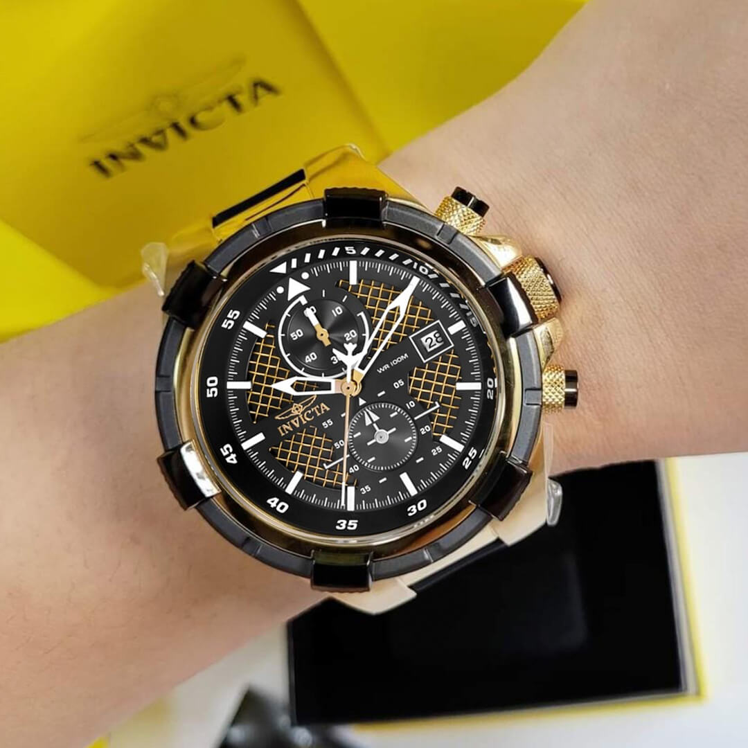 Reloj Invicta Aviator 28100 Hombre Negro y Dorado