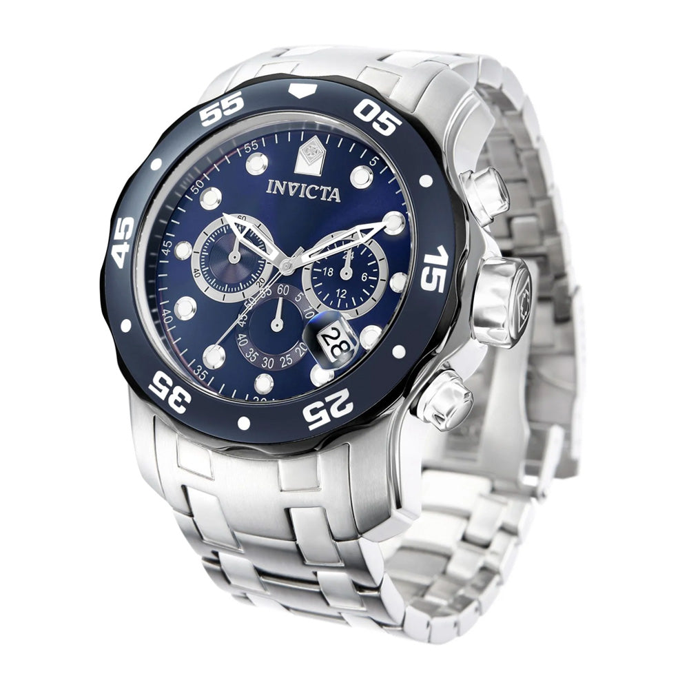 El Invicta Scuba 0070 (INV-11) emerge como una combinación poderosa de estética robusta y funcionalidades diseñadas para rendir en condiciones exigentes. Con una caja de acero inoxidable de 48 mm, bisel en azul y blanco que capta miradas, esfera tipo metálica azul, y cristal Flame Fusion, este reloj impone presencia sin sacrificar precisión. Es el reloj para quien quiere que su reloj destaque, tanto en tierra como bajo el agua.