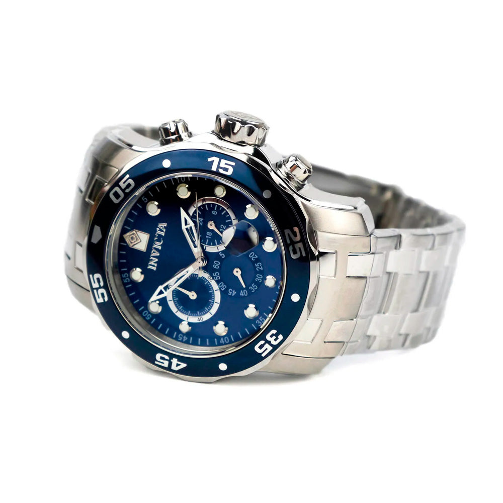 • Diseño impactante: azul vibrante en el dial combinado con acentos blancos y acero inoxidable, bisel marcado y caja de gran tamaño (48 mm) que transmite carácter.