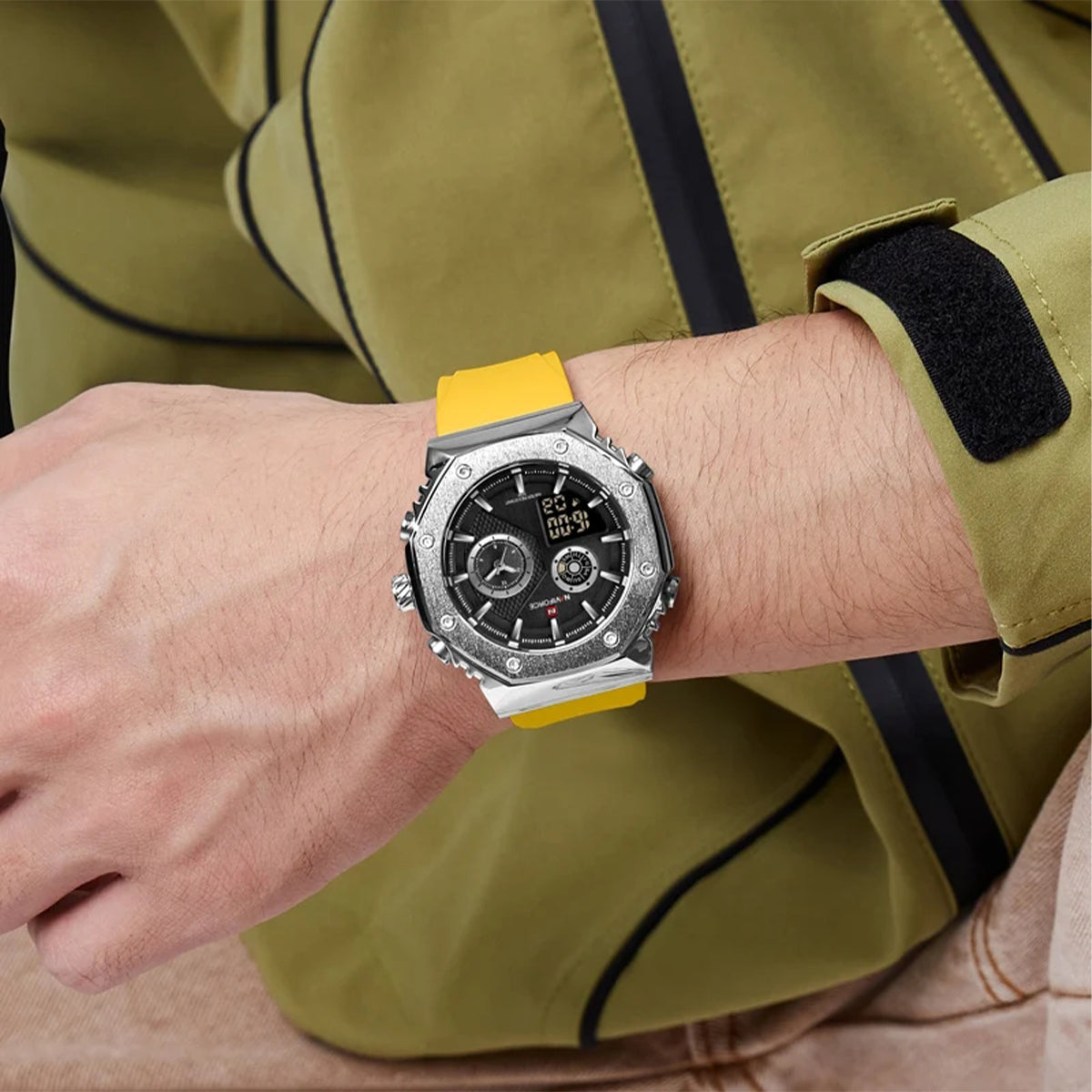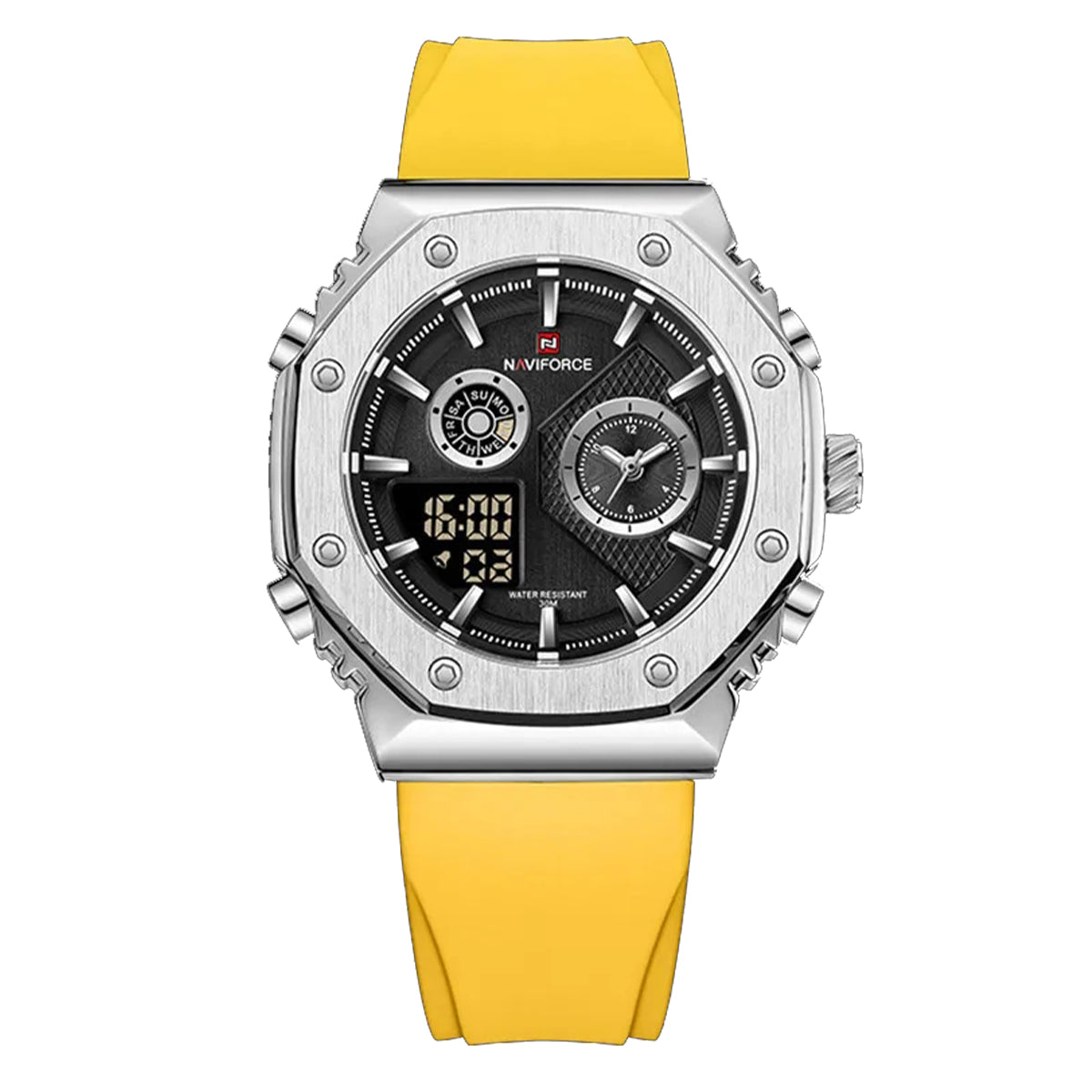 Reloj Naviforce amarillo NAV-93 de moda con correa de silicona, 100% original de fábrica, garantía 1 año, el acompañante perfecto para el hombre actual.