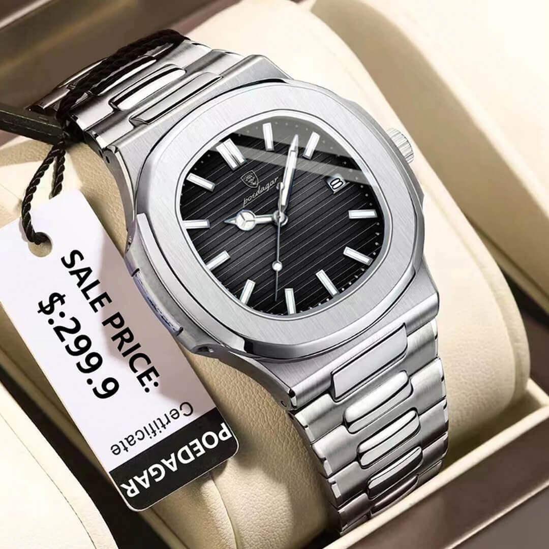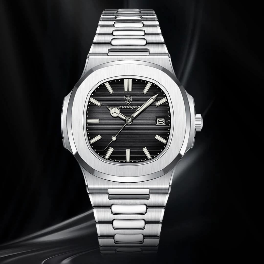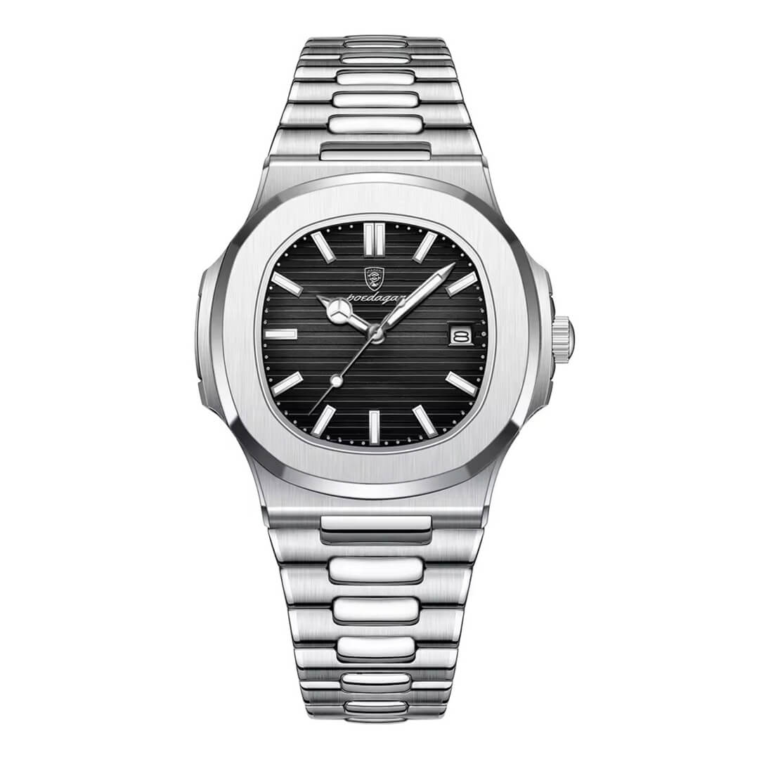 El Poedagar (POE-17) redefine la relojería de moda con un diseño octogonal en tono plateado que combina innovación y carácter. Su tablero negro aporta sobriedad y contraste, mientras que la correa de acero inoxidable garantiza resistencia y un estilo distintivo que no pasa desapercibido.